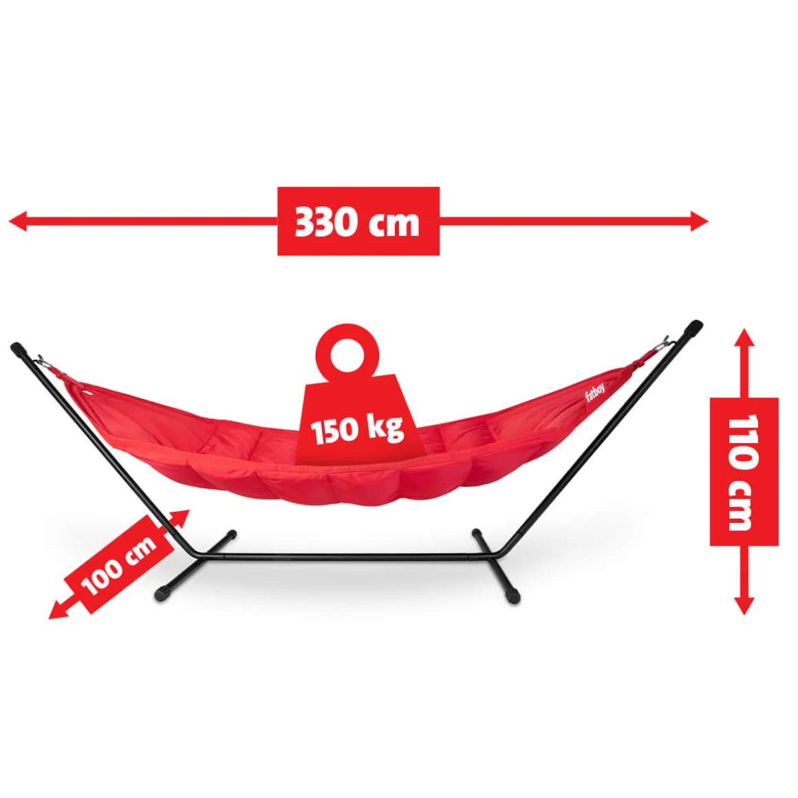 Die Headdemock von Fatboy ist Ihre persönliche Wohlfühloase für Garten, Terrasse und Balkon. Die großzügige Hängematte mit Gestell bietet Platz für bis zu zwei Personen (max. 150 kg) – ideal zum Entspannen allein oder zu zweit. Mit ihrem strapazierfähigen Polyesterbezug, der schmutzabweisend und pflegeleicht ist, bleibt die Headdemock auch bei intensiver Nutzung lange Zeit wie neu.