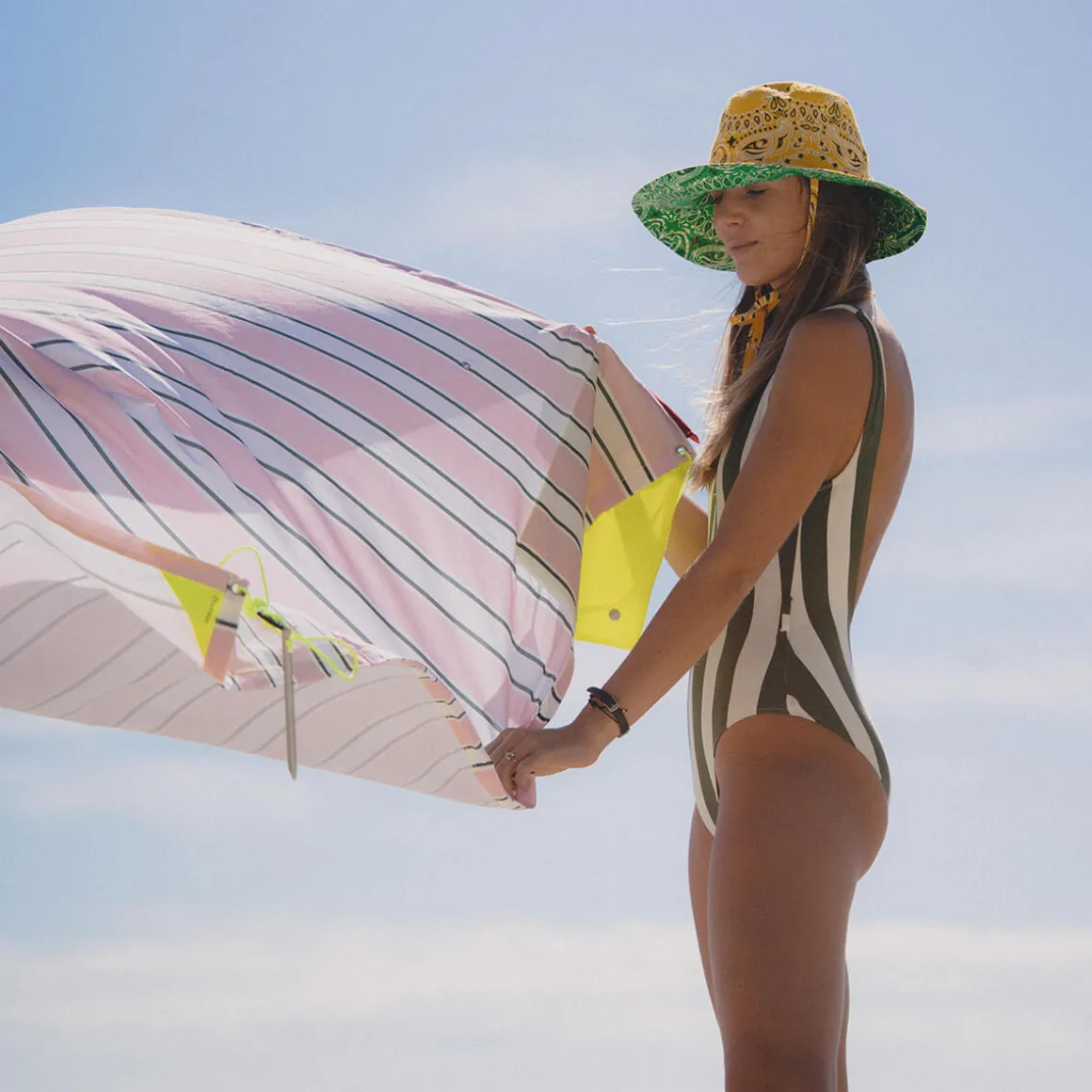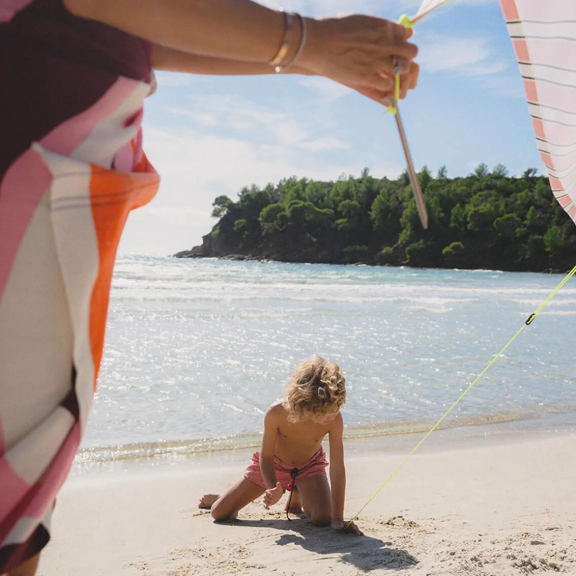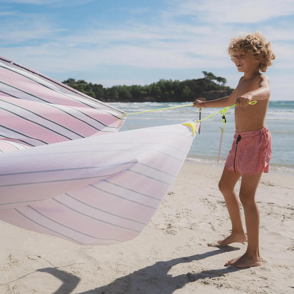 Entworfen wurde das Strandzelt von Valériane Voirin und Hortense Pontabry. Die französischen Designerinnen waren auf der Suche nach einem effektiven Sonnenschutz, der sich im Gegensatz zu klobigen Sonnenschirmen oder komplizierten Strandzelten einfach mitnehmen ließe. Dies ist ihnen mit dem Sonnensegel zweifelsfrei gelungen.