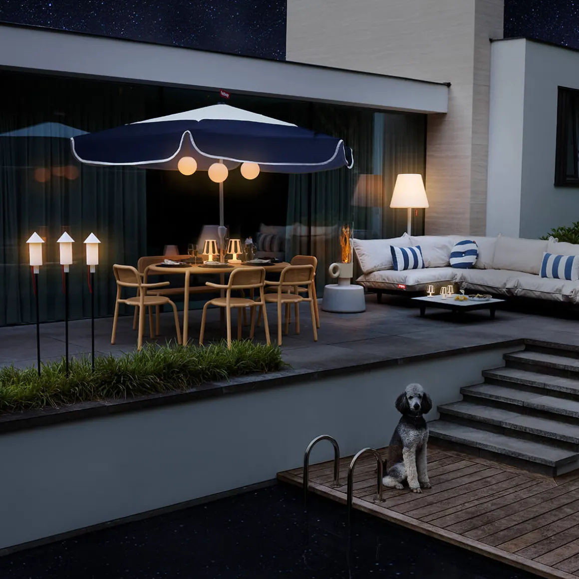 Sind Sie bereit für einen beleuchteten Garten der Extraklasse? Dann entdecken Sie die Prêt a Racket LED Solarleuchten von Fatboy und bringen Sie Spaß und Faszination in Ihren Außenbereich. Bei Prêt a Racket handelt es sich um ein Set aus drei solarbetriebenen Stehleuchten, die an schlanke Raketen erinnern. Die Leuchtenköpfe erzeugen ein warmes, diffuses Licht, das sich automatisch bei Einbruch der Dunkelheit aktiviert und nach sechs Stunden, ohne dass Sie sich darüber Gedanken machen müssen, wieder ausschaltet.