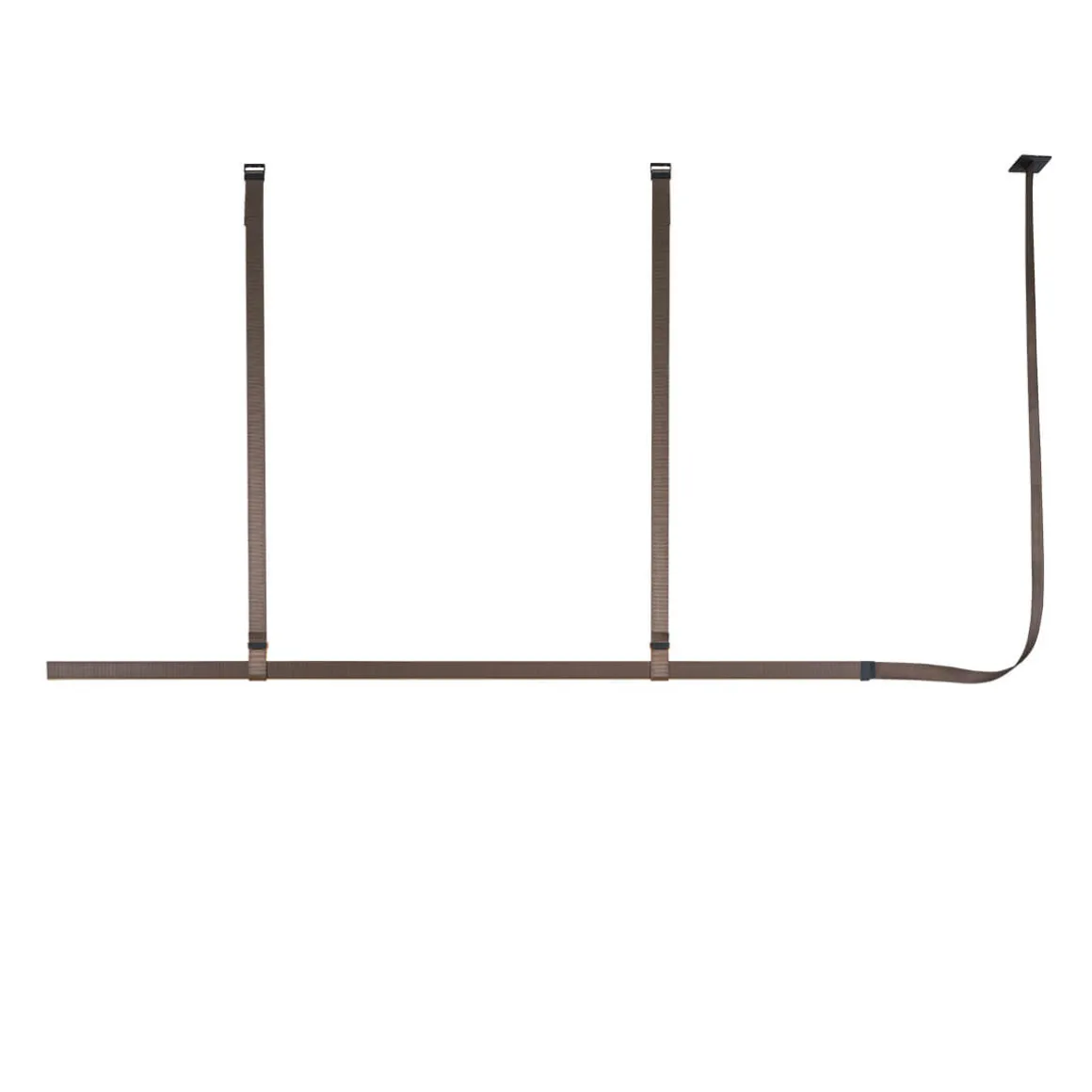 Indem die Gewebebänder durch die Schnallen hindurchgeschoben werden, gestaltet sich die Montage der Pendellampe besonders einfach. Jedes Band kann angepasst werden, um die Beschaffenheit der Umgebung zu berücksichtigen. Durch einen speziellen Mikroanschluss, der in die Klemme des schlanken Beleuchtungsprofils integriert ist, wird die elektrische Verbindung hergestellt.