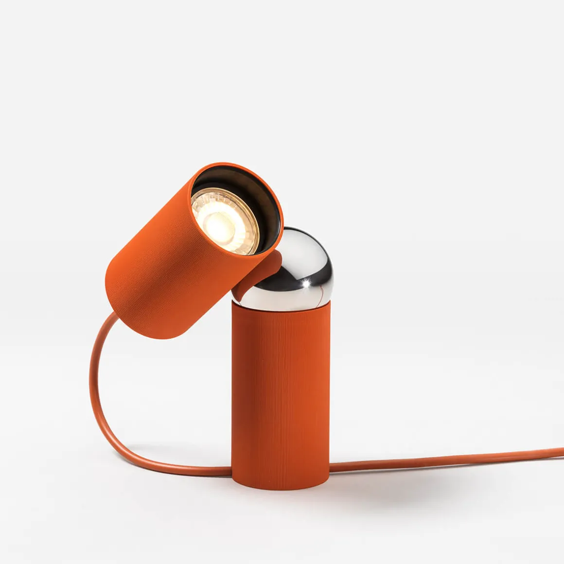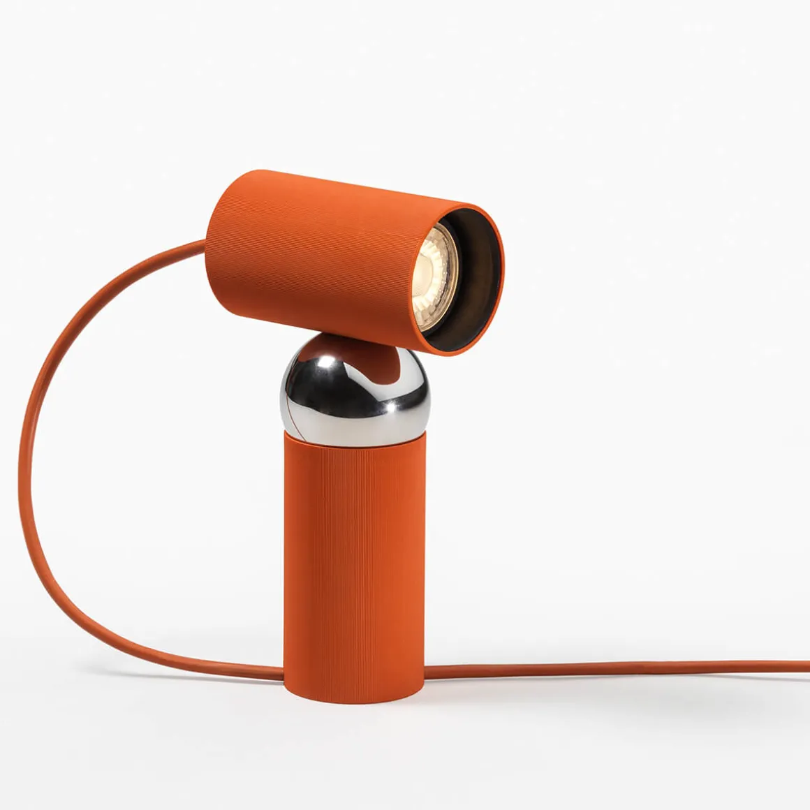 Die Nachhaltigkeit der Flos Bilboquet Tischleuchte wird durch ihre Konformität mit den ISCC-Standards unterstrichen. Alle Hauptkomponenten sind leicht demontierbar, was die Reparatur, den Austausch oder die umweltgerechte Entsorgung der erleichtert. Leuchtenkopf und -körper bestehen aus einem speziellen, pigmentierten Polycarbonat, das aus Nebenprodukten der Papierherstellung und nicht aus Erdöl gewonnen wird. Die Edelstahlkugel, an der der verstellbare Kopf magnetisch befestigt ist, ist mit einer robusten PVD-Beschichtung versehen.