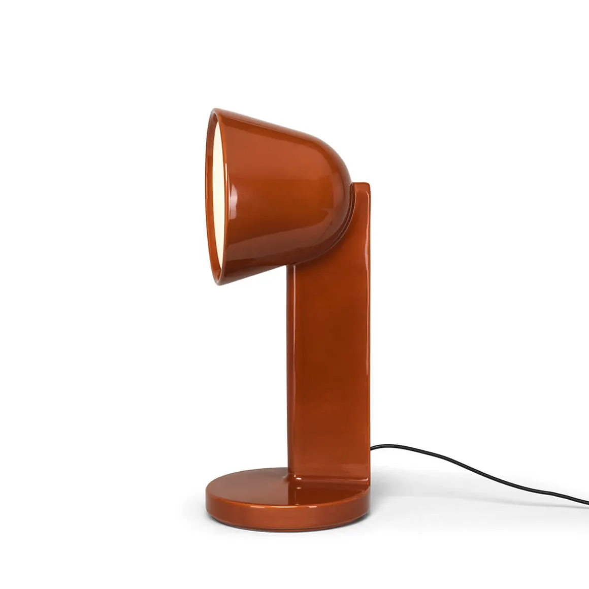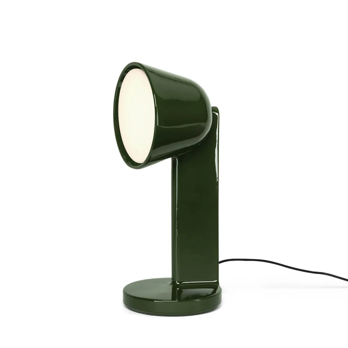 Die geschmeidige Linienführung, kombiniert mit einer bleifreien, kristallinen Lackierung, verleiht der Tischleuchte einen sowohl noblen als auch zeitlosen Charakter. Die verfügbaren Farbnuancen, Moss Green, Navy Blue und Rust Red, betonen die glatte Oberfläche der und reflektieren die Tiefe des verwendeten Materials.