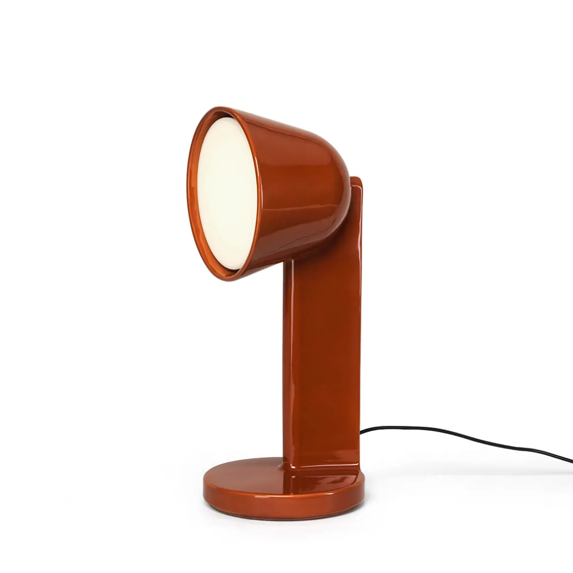 Kennzeichen der Céramique Side Tischleuchte ist der seitliche Lichtaustritt, der speziell dazu konzipiert wurde, Wände oder Ecken von einem Beistelltisch oder einer Kommode aus zu erhellen. Der weiße Diffusor aus Polycarbonat sorgt für eine angenehme und weiche Lichtausstrahlung, ideal für Wohnbereiche oder ein gemütliches Interior.