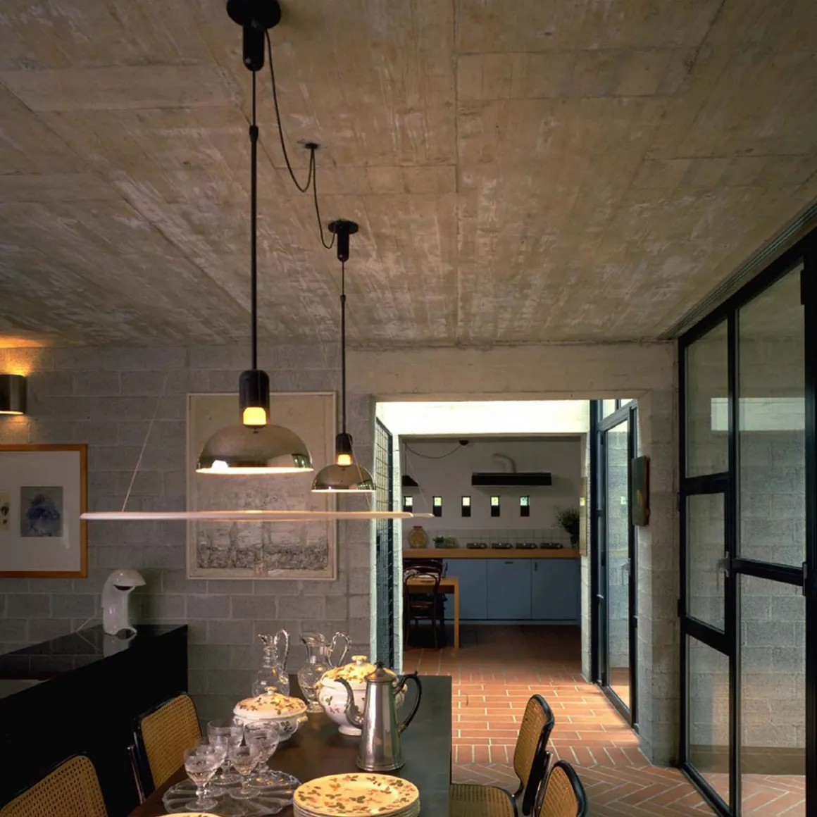 Das durch die Flos Frisbi Pendelleuchte generierte Licht wird direkt und diffus in den Raum gestreut: Über die zentrale Öffnung der Diffusorscheibe wird das Licht nach unten hin abgegeben, während die opale Oberfläche derselben für eine nach oben hin reflektierte, diffuse sorgt. Auf diese Weise eignet sich die sowohl zur Raumausleuchtung als auch zur Beleuchtung von Tischflächen.