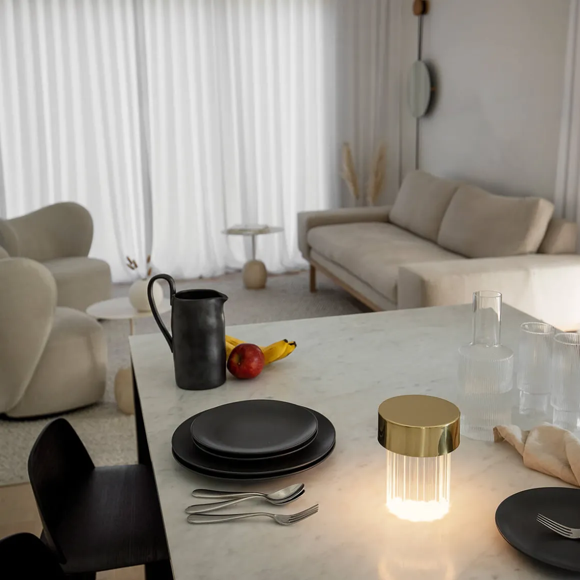 Ob als eleganter Begleiter auf der Dinnertafel, als dekorativer Lichtpunkt in der Garten-Lounge oder als stilvolle Lichtquelle auf dem Beistelltisch – die Last Order Fluted Tisch-Akkuleuchte ist so mobil wie das Leben selbst. In den Ausführungen Edelstahl und Grün trotzt sie auch einem gelegentlichen Regenschauer und fühlt sich draußen ebenso zuhause wie im Innenbereich.