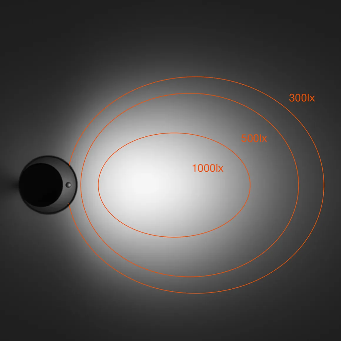 Im flachen Kopf verbirgt sich eine patentierte optische Linse, die einen asymmetrischen Lichtstrahl erzeugt. Dieser trifft genau dort auf, wo Licht gebraucht wird – flimmerfrei und blendfrei mit einem UGR-Wert unter 10. Dies wird den Anforderungen an professionelle Bildschirmarbeitsplätze mehr als gerecht. Die warmweiße Lichtfarbe von 2.700 K sorgt für eine angenehme Atmosphäre. Für professionelle Arbeitsumgebungen stehen auf Anfrage Versionen mit 3.000 oder 4.000 K zur Verfügung.