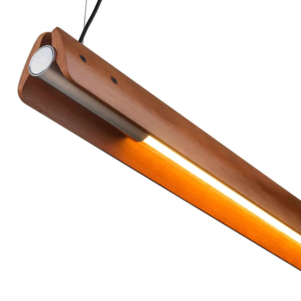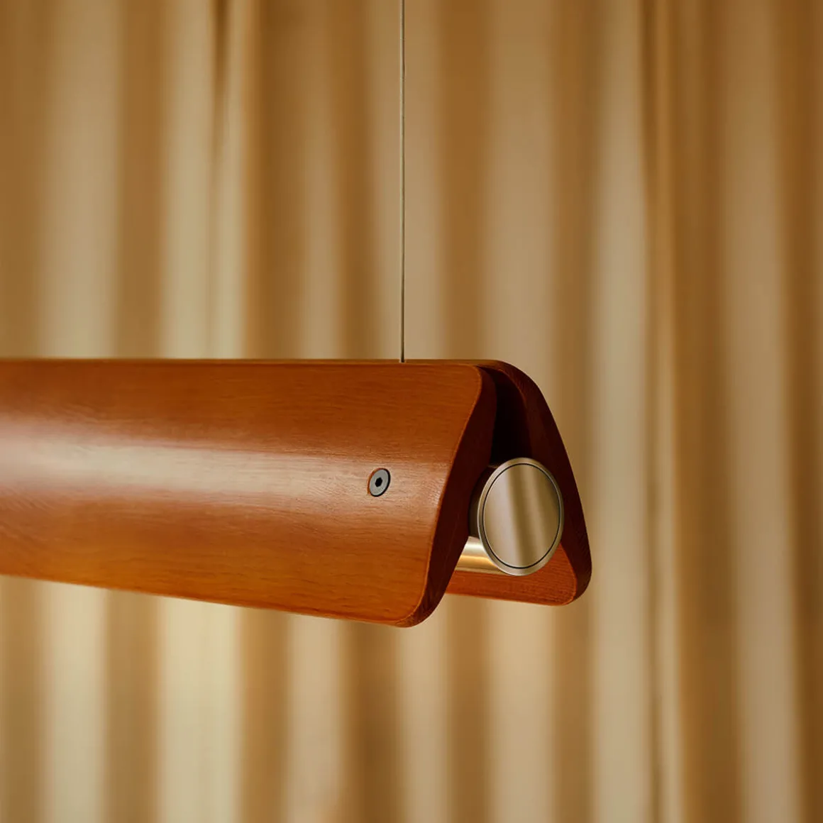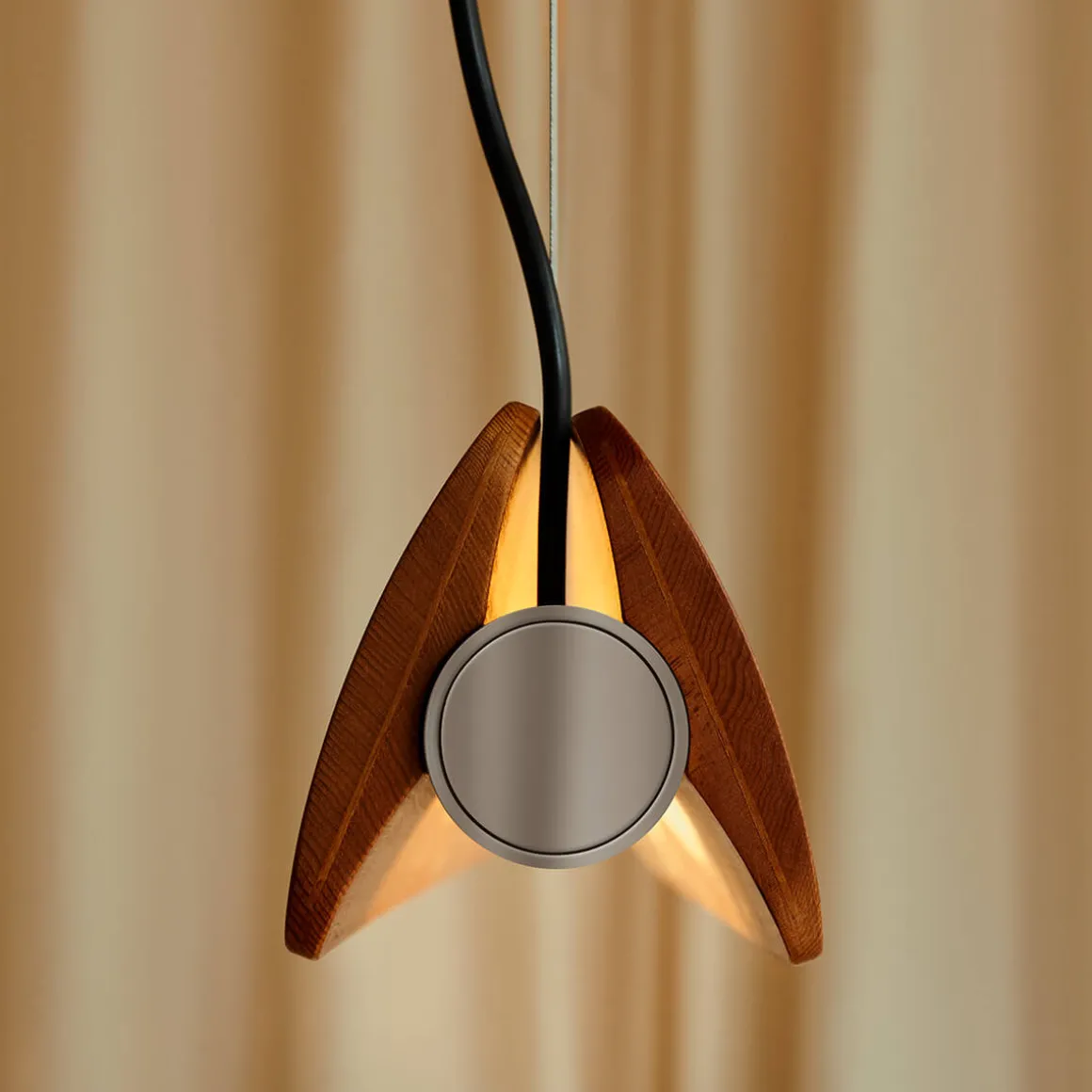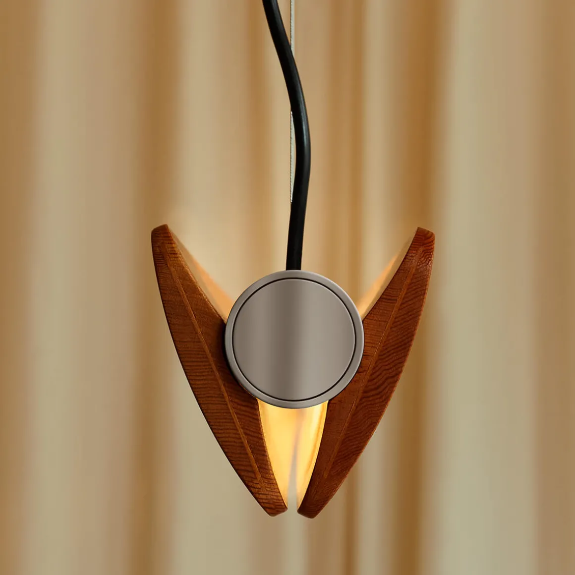 - Schlanke Hängeleuchte mit verstellbaren Flügeln aus Holz