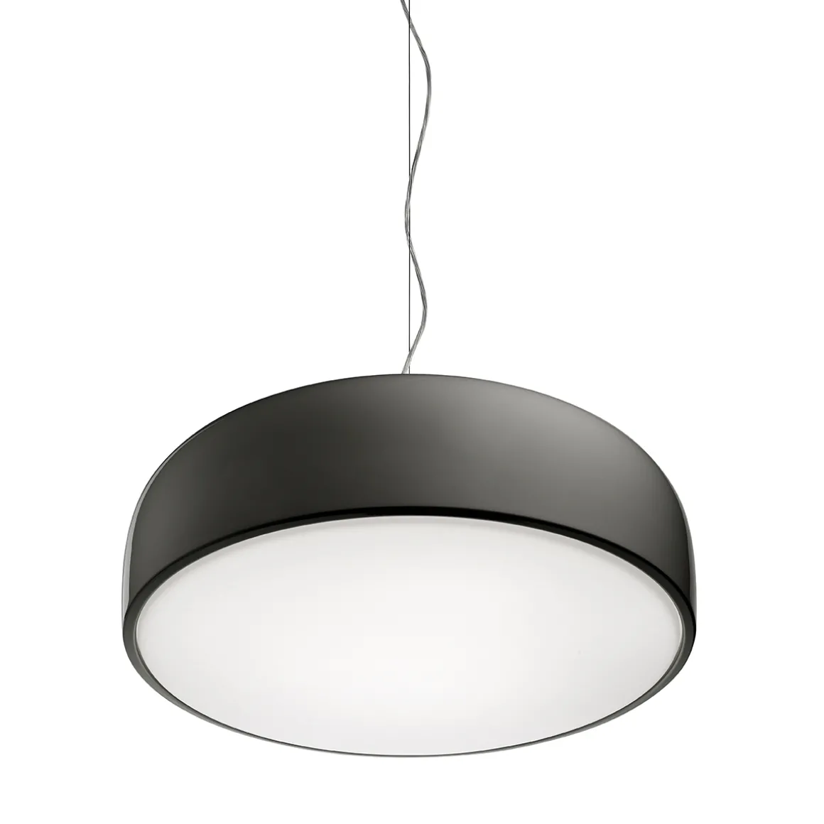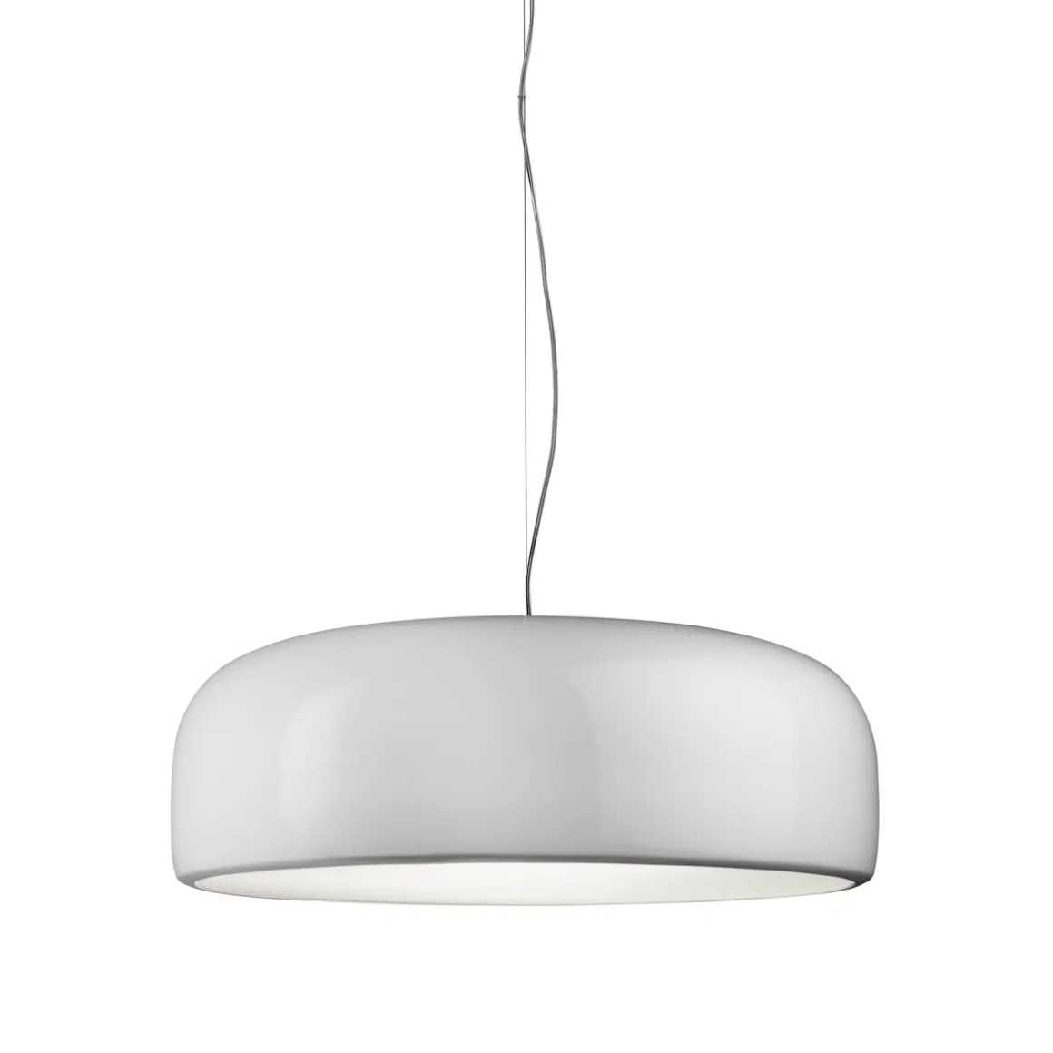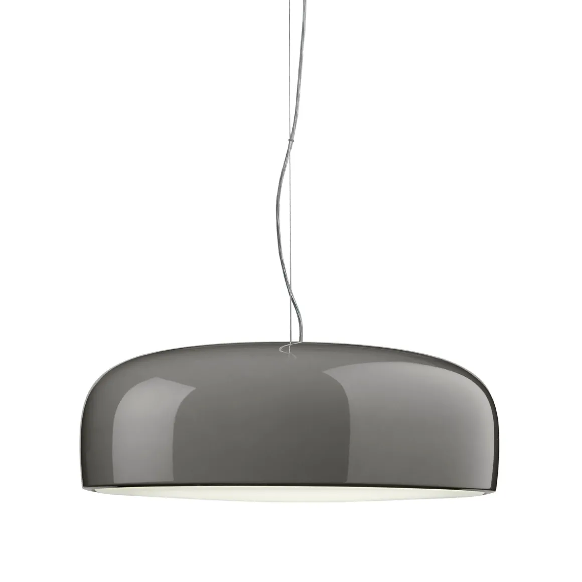 Der schalenförmige Korpus der Flos Smithfield S Pro LED Pendelleuchte ist aus Aluminium gefertigt und in glanzvoller Farblackierung oder Mattschwarz gehalten. Als Streukörper dient der ein spritzgegossener Schirm aus opalisierendem Methacrylat, der die nach unten hin abdeckt. Deckenrosette und Hängependel sind aus Edelstahl kreiert.