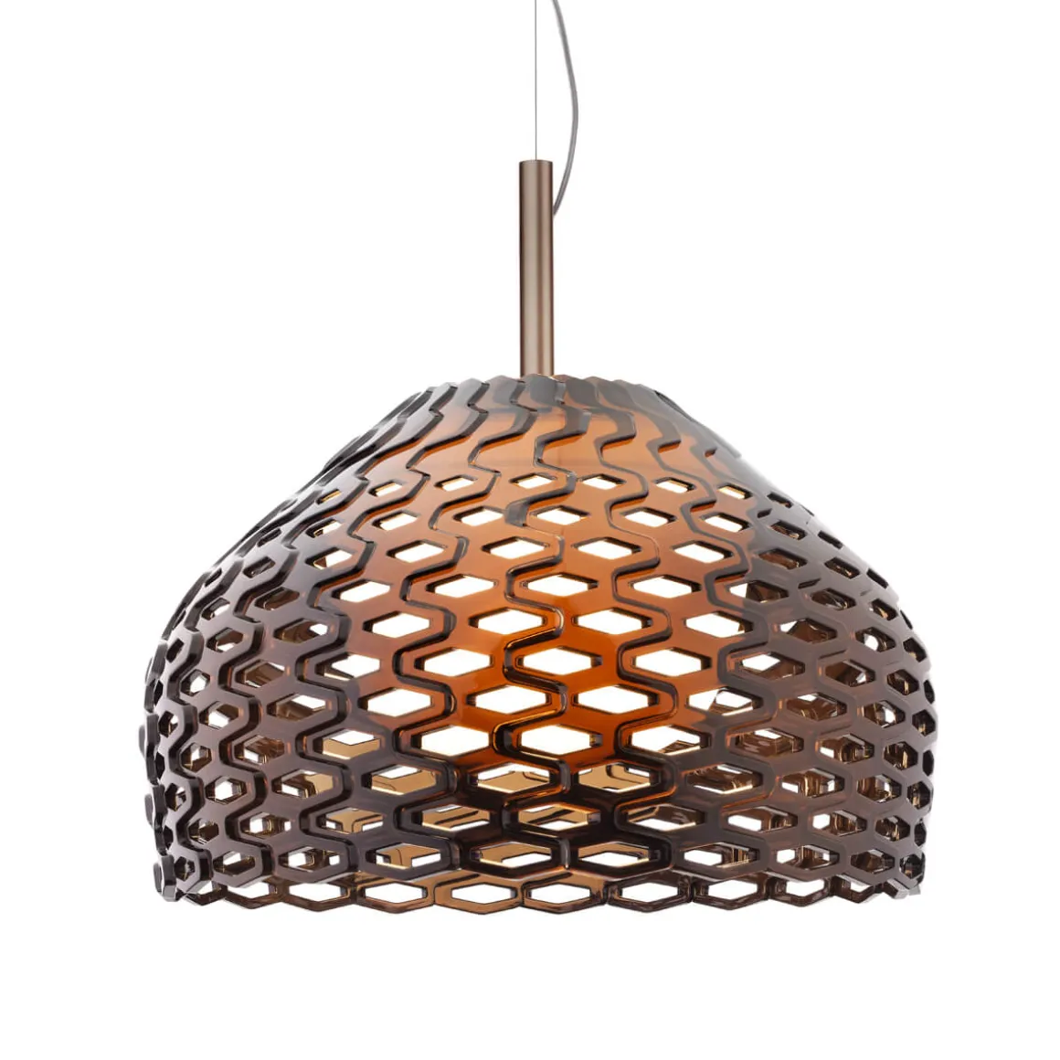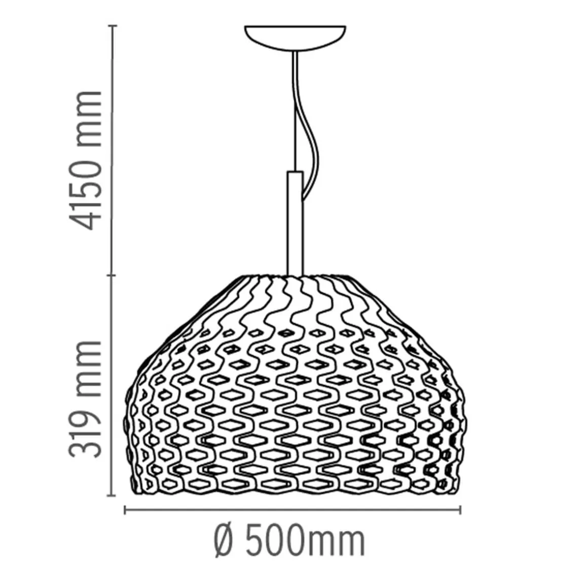 - Gerundete Hängelampe mit kunstvoll perforiertem Schirm