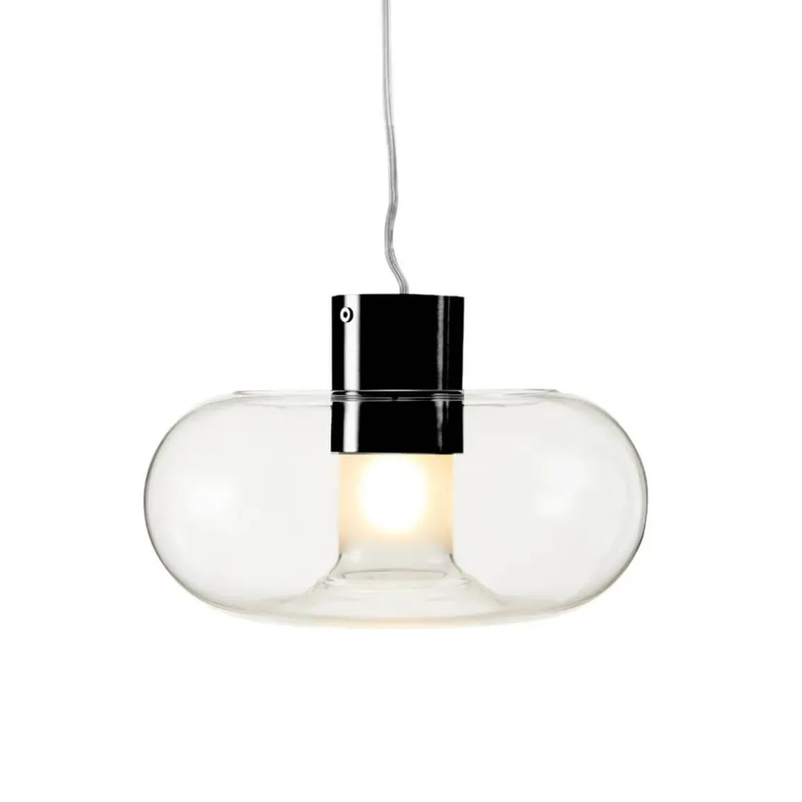 | Lampenschirm: | Geblasenes Borosilikatglas transparent, Innendiffusor: Glas sandgestrahlt |