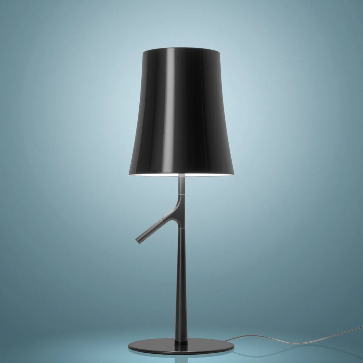 Mit ihrer elegant geschwungenen Silhouette und den reizvollen Details repräsentiert die Birdie Piccola Tavolo LED ein sympathisches Designobjekt. Während Aufbau und ausschwingender Leuchtenschirm auf die Formensprache klassischer Tischleuchten rekurrieren, bezeugen Material – farbig gefasstes Polycarbonat – und Form des Leuchtenfußes die originelle Idee hinter dem Designkonzept.