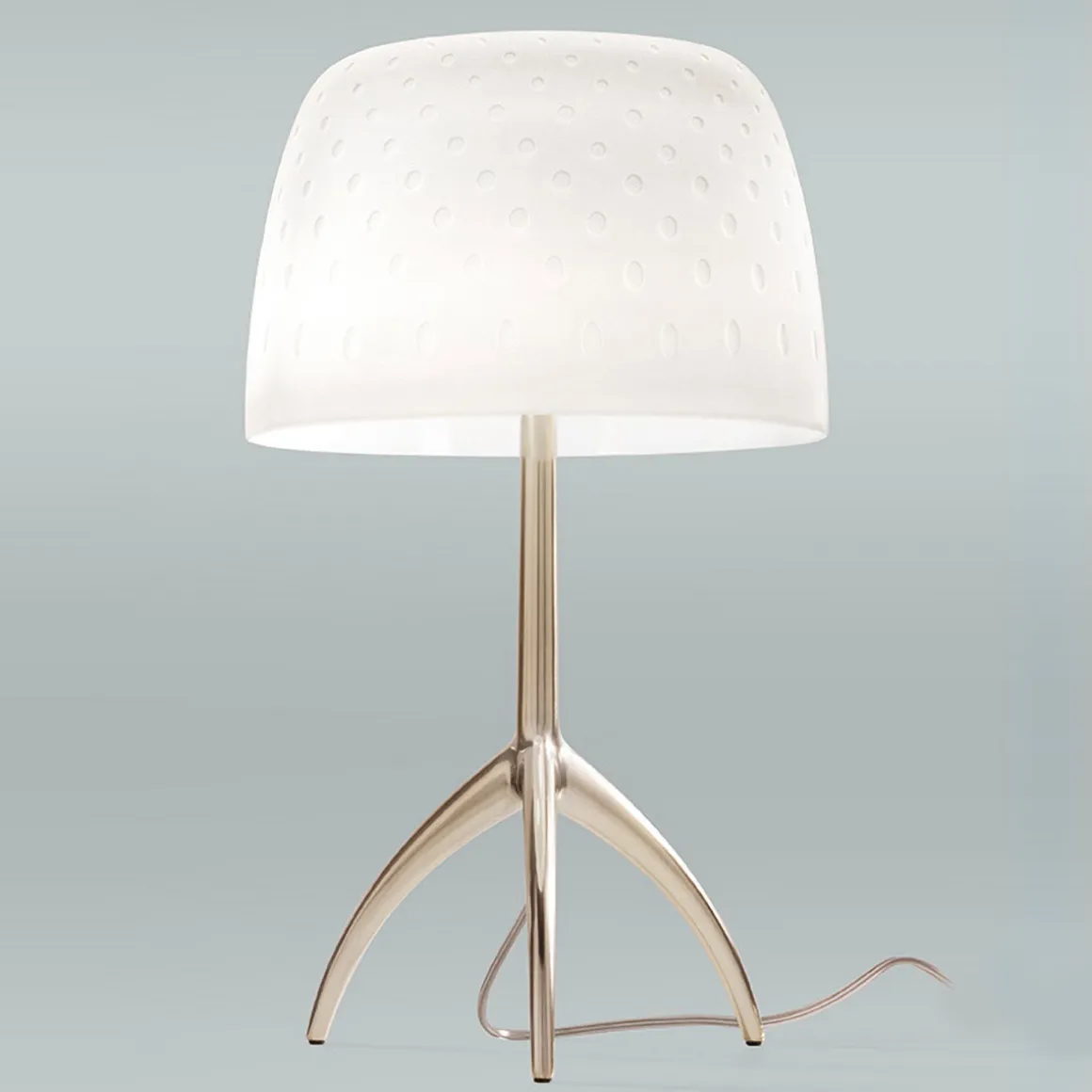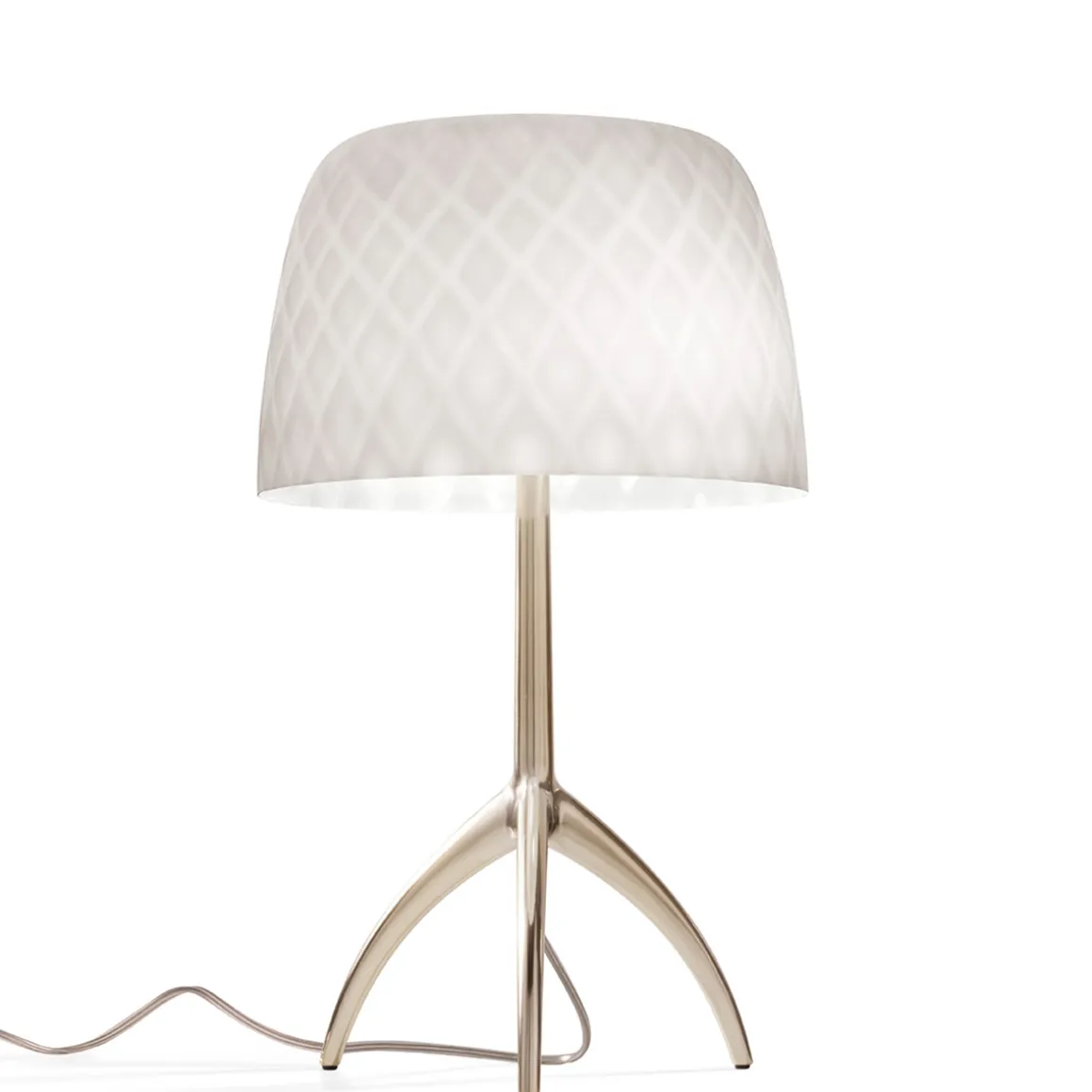 - Elegante Tischleuchte mit edel anmutendem, chamapgnerfarbenem Fuß