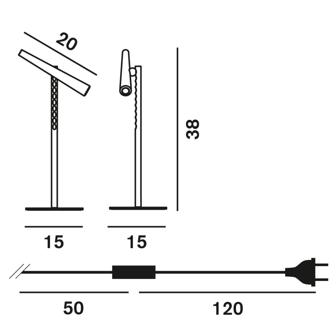 In seiner Form erinnert der aus ABS-Kunststoff gefertigte Kopf an eine Taschenlampe oder ein Mikrofon, eine grazile Form, die die moderne Linie des Produkts unterstreicht. Die kreisrunde Basis der Magneto Tavolo Tischlampe besteht aus mit Epoxidharz-Pulverlack beschichtetem Edelstahl. Das schwarz Kabel mit Ein- und Ausschalter verläuft sichtbar im Innern des Schafts.