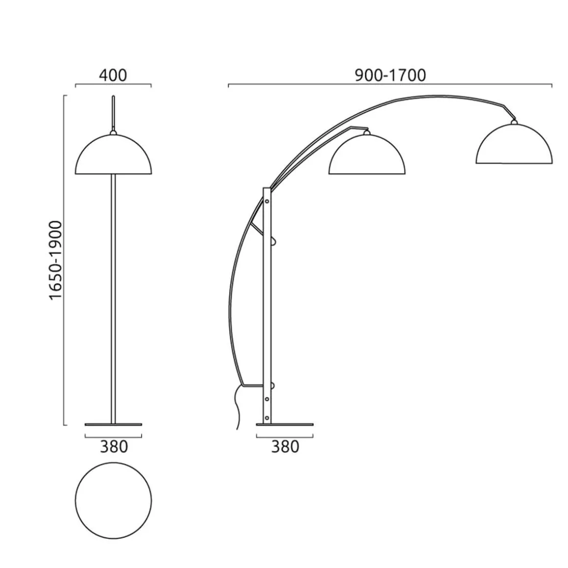 - Der Leuchtenarm als Bogen lässt sich in der Höhe Verstellen