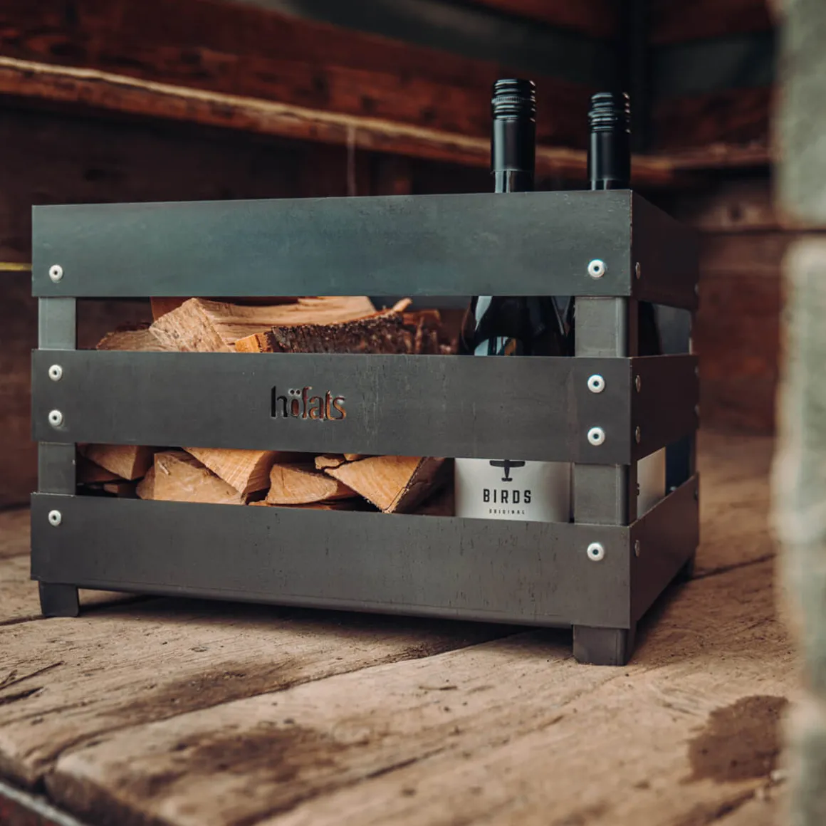 Der Name ist Programm und noch sehr viel mehr: Crate – das englische Wort für „Kiste“ – tritt in die Fußstapfen der beliebten höfats Beer Box. Während für die kleine Schwester die Bierkiste Inspirationsquelle war, erinnert der Crate Feuerkorb an eine traditionelle Wein- und Obstkiste.