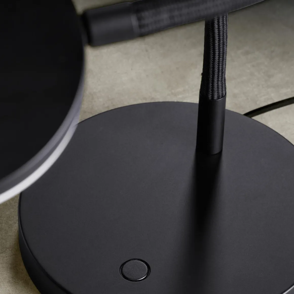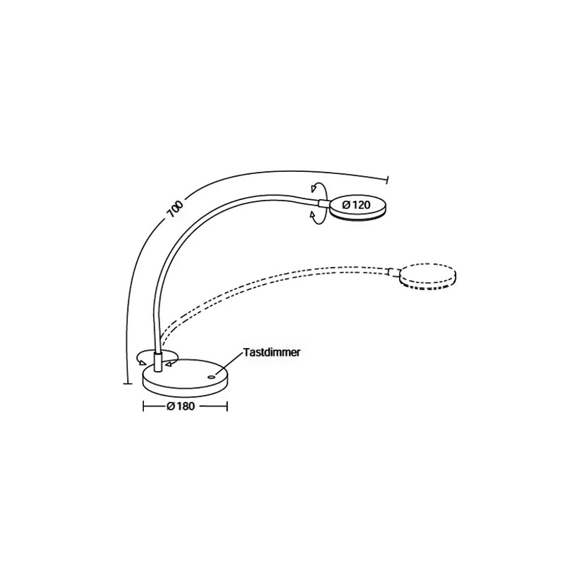 - Tastdimmer mittig auf dem Sockel integriert