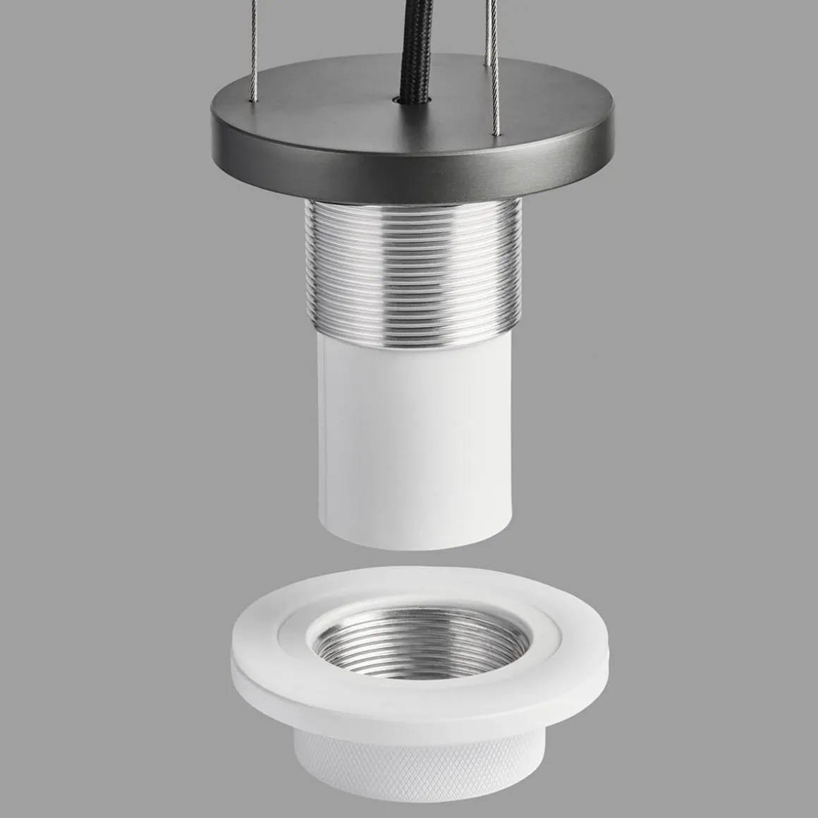- Die gewünschte Pendelhöhe kann am Baldachin bei der Montage eingestellt werden