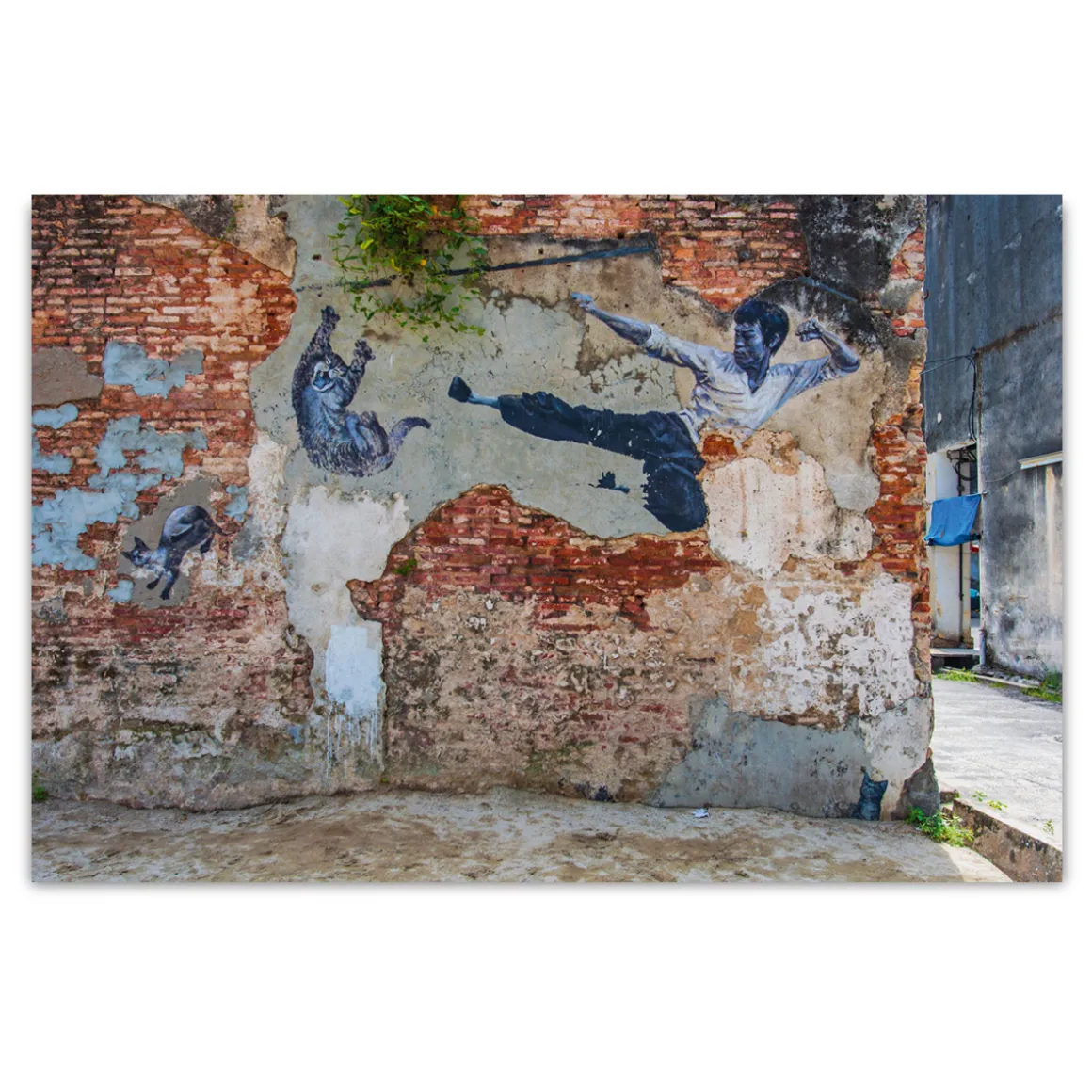 - Cooles Motiv mit Martial Arts Kämpfer im Zwist mit einer Katze