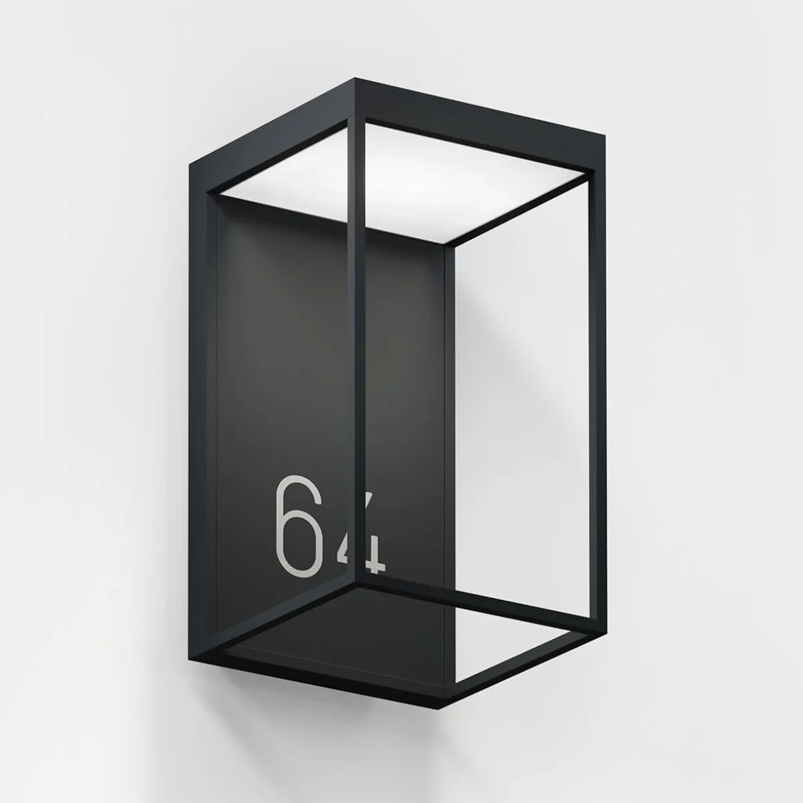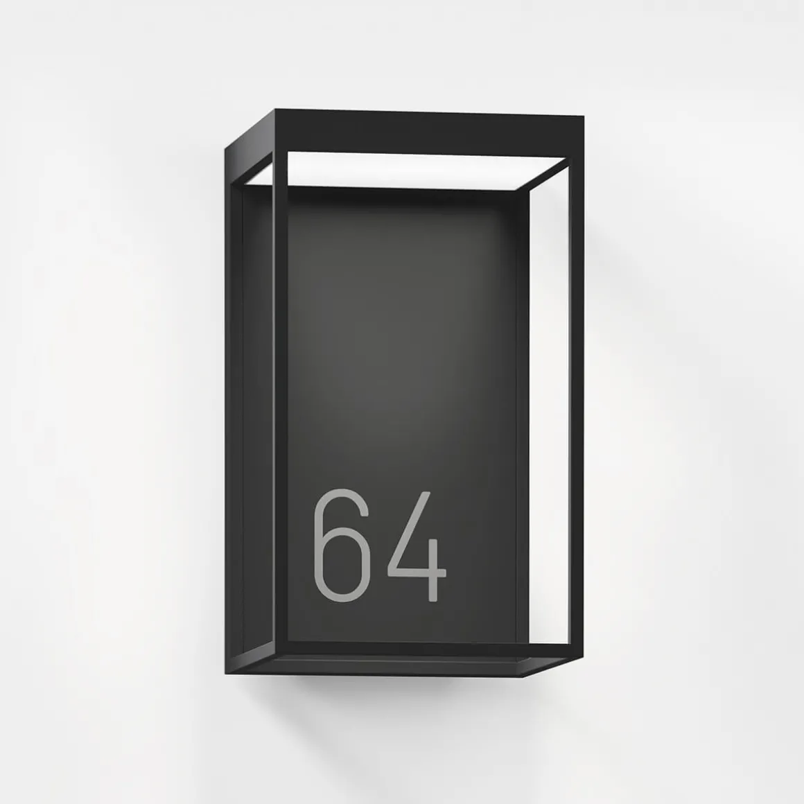 - Außen-Wandlampe in Schwarz mit Hausnummer in minimalistischer Linienführung