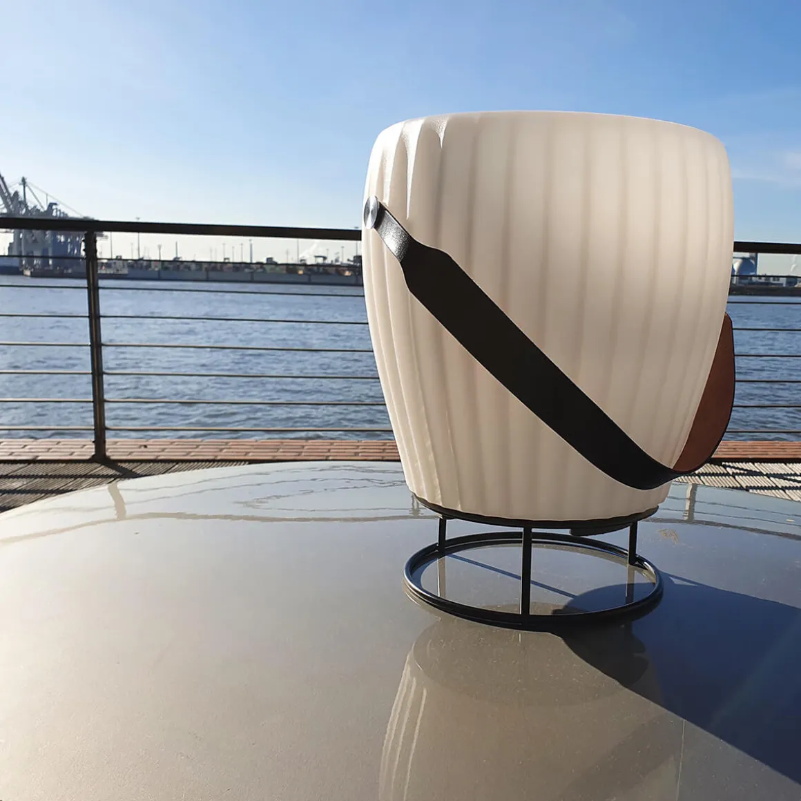 - Sorgt durch die erhöhte Platzierung des Lautsprechers für eine noch bessere, satte Klangqualität und unterstreicht das Design