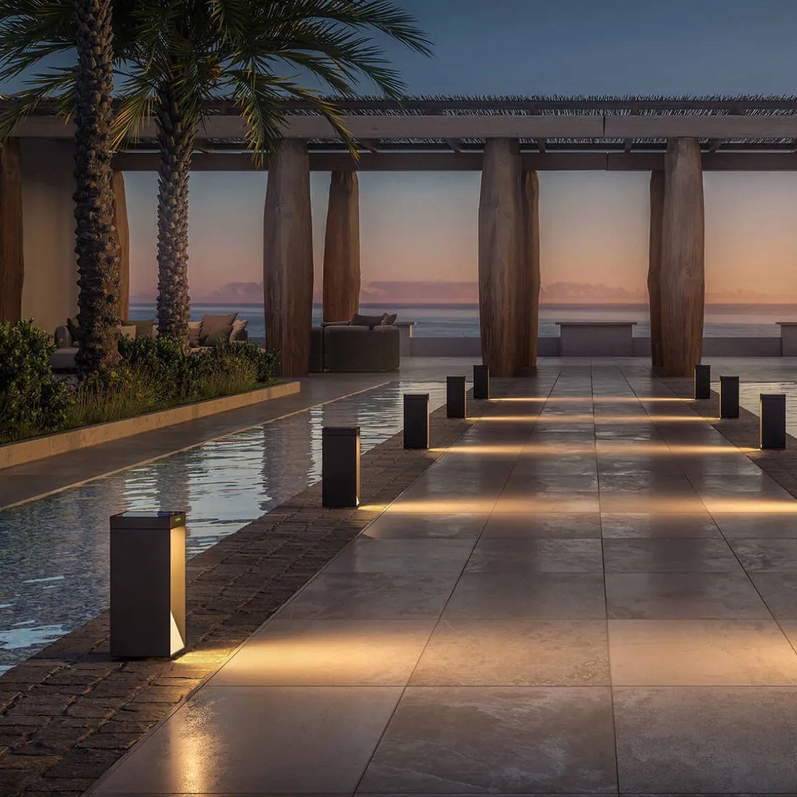 Die Milio Side ist eine kabellose Solar-Stehlampe, die mit einem seitlichen Lichtaustritt punktet – perfekt, um Wege, Terrassenflächen oder Eingangsbereiche effektvoll zu beleuchten. Ihr minimalistischer, geradliniger Look fügt sich harmonisch in jede Umgebung ein – vom modernen Stadtgarten bis zur luxuriösen Hotelanlage. Dabei sorgt die für Sicherheit und Orientierung, ohne zu blenden.