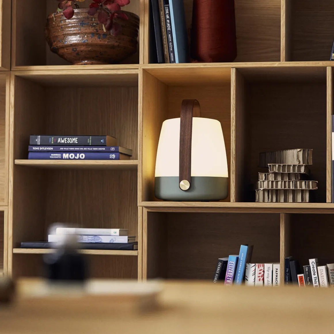 Erhältlich ist die Kooduu Lite-up LED Akkuleuchte in vier trendigen Farben: in einem sanften Erdton, schönen Petrol, satten Ozeanblau und soften Sand. Elegante Messingakzente verleihen dem Design eine edle Note. Der angenehm in der Hand liegende Henkel aus FSC-zertifiziertem Holz schenkt der Akku-Tischleuchte besonderen Charme und macht sie zu einem attraktiven Blickfang in jedem Raum.