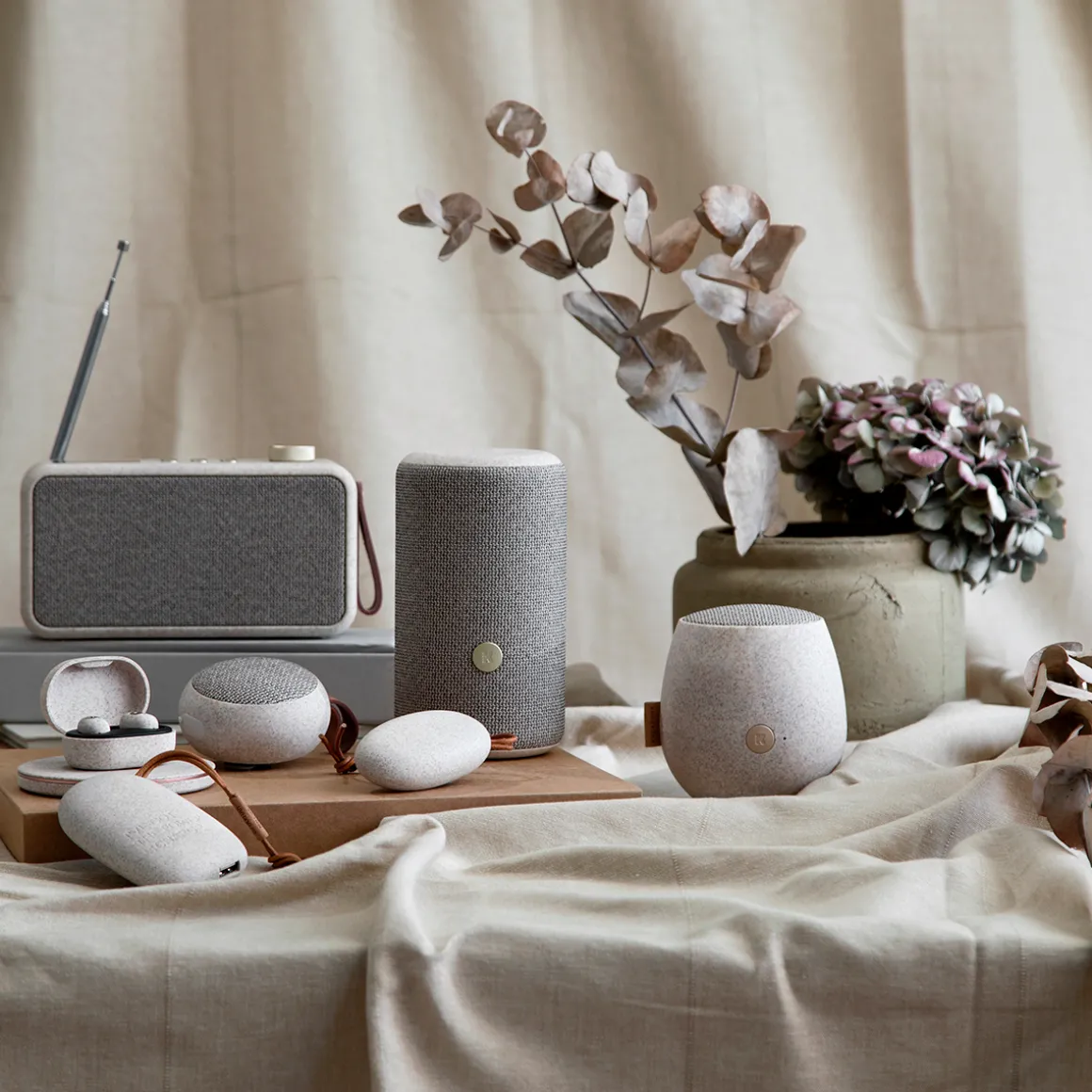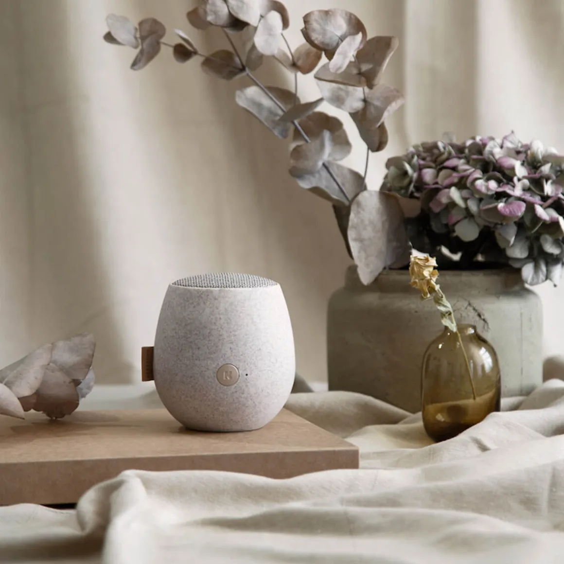 Aus Liebe zur Umwelt: Der Kreafunk aJAZZ II CARE Bluetooth Lautsprecher wird auf umweltfreundliche Weise aus wiederverwendeten Materialien hergestellt. Der stylishe Speaker enthält einen um 35 % reduzierten Anteil an Kunststoff, der durch Weizenstrohfasern, ein natürliches Abfallprodukt der Weizenproduktion, ersetzt wurde. Aus zu 98 % recyceltem Polyester besteht die Lautsprecherfront, gefertigt von dem dänischen Textilhersteller Gabriel aus PET-Flaschen.