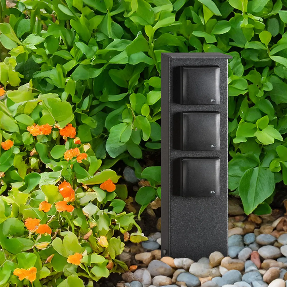 - Kompakte Steckdosensäule mit drei Steckdosen