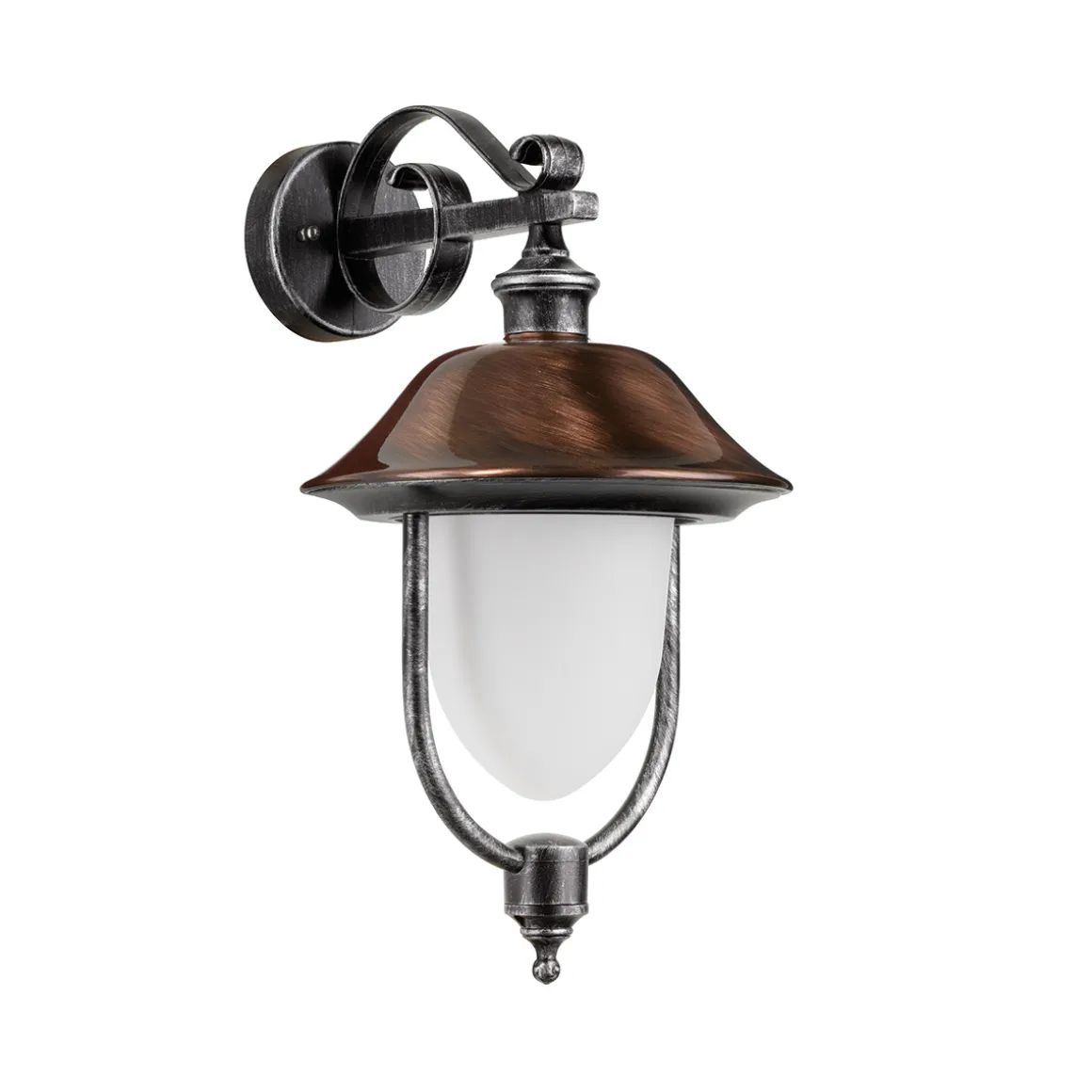 Der filigran gestaltete Leuchtenkorpus ist aus pulverbeschichtetem Aluminiumdruckguss gefertigt und in attraktiver Vintage-Tönung gehalten. Diese unterstreicht zusammen mit der fein geschwungenen Verzierung der Armatur den antik anmutenden Charakter des Produkts. Als Leuchtenschirm dient ein tropfenförmiger Diffusor aus Opalglas, der für eine angenehm sanfte, diffus gestreute sorgt.