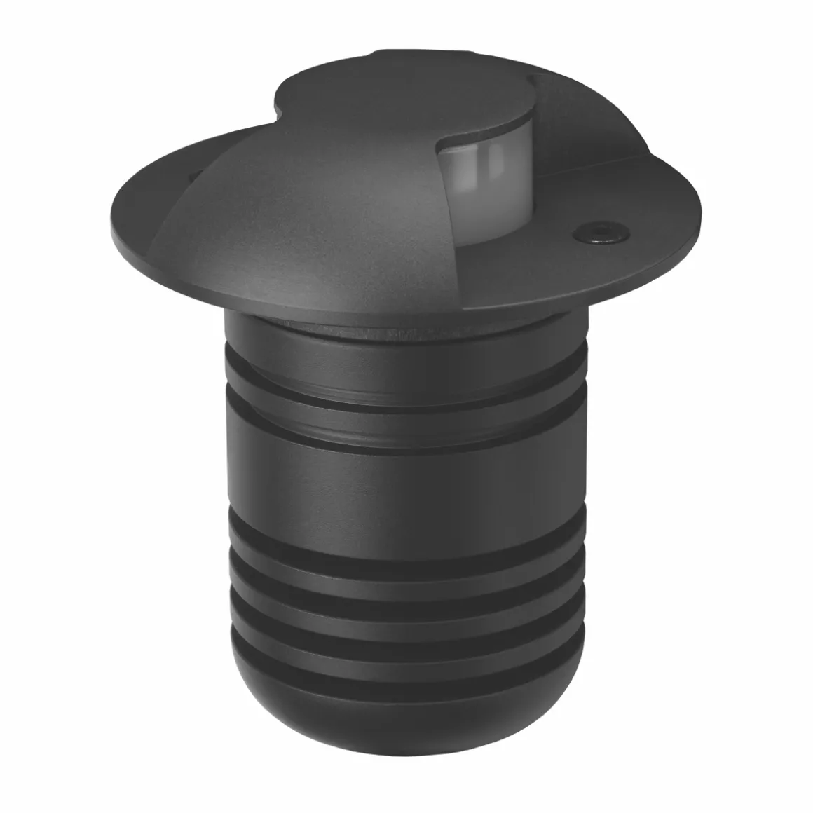 - Moderner, leicht gerundeter Bodeneinbaustrahler zur akzentuierten Beleuchtung von Hausfassaden, Sträuchern und Terrassen
