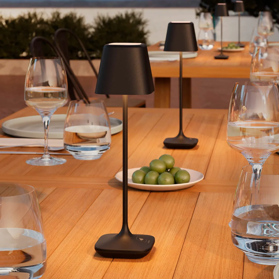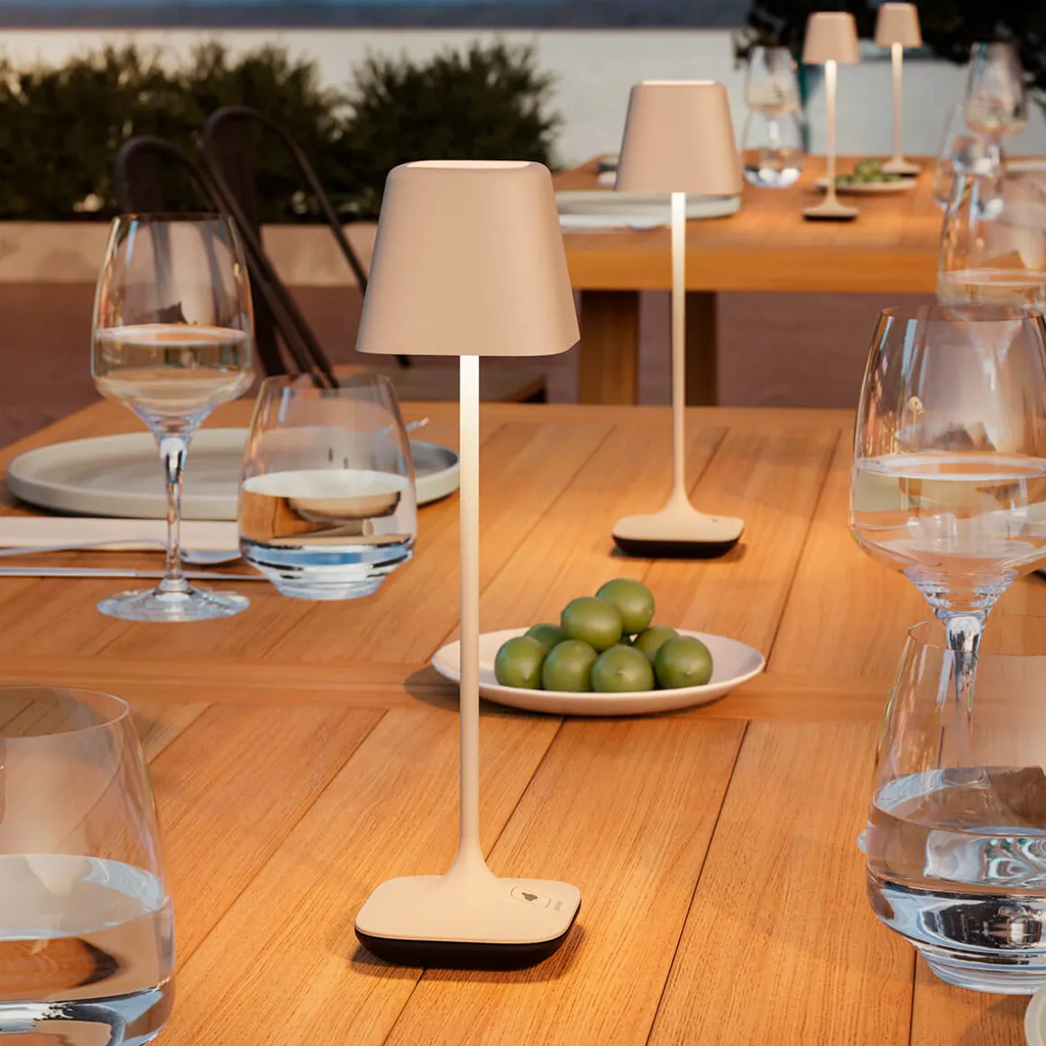 Dank des praktischen Batteriebetriebs ist die Capri immer und überall einsatzbereit. Einfach über die mitgelieferte Ladestation aufgeladen, spendet sie lange warmes, stimmungsvolles Licht. Wählen Sie zwischen zwei warmweißen Lichtfarben (2.200 K und 2.700 K) oder nutzen Sie die vielfältigen RGB-Farbnuancen, um Ihre Räume individuell auszuleuchten und je nach Anlass die passende Atmosphäre zu schaffen.