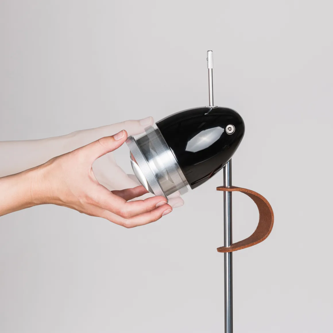 - Höhenverstellbares Teleskoprohr aus poliertem Aluminium