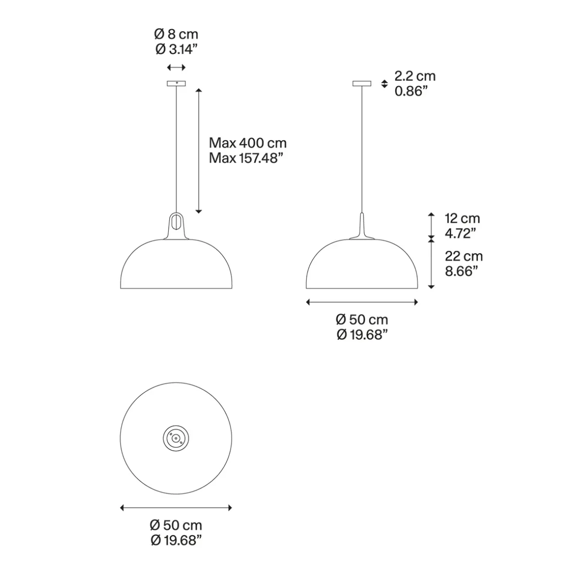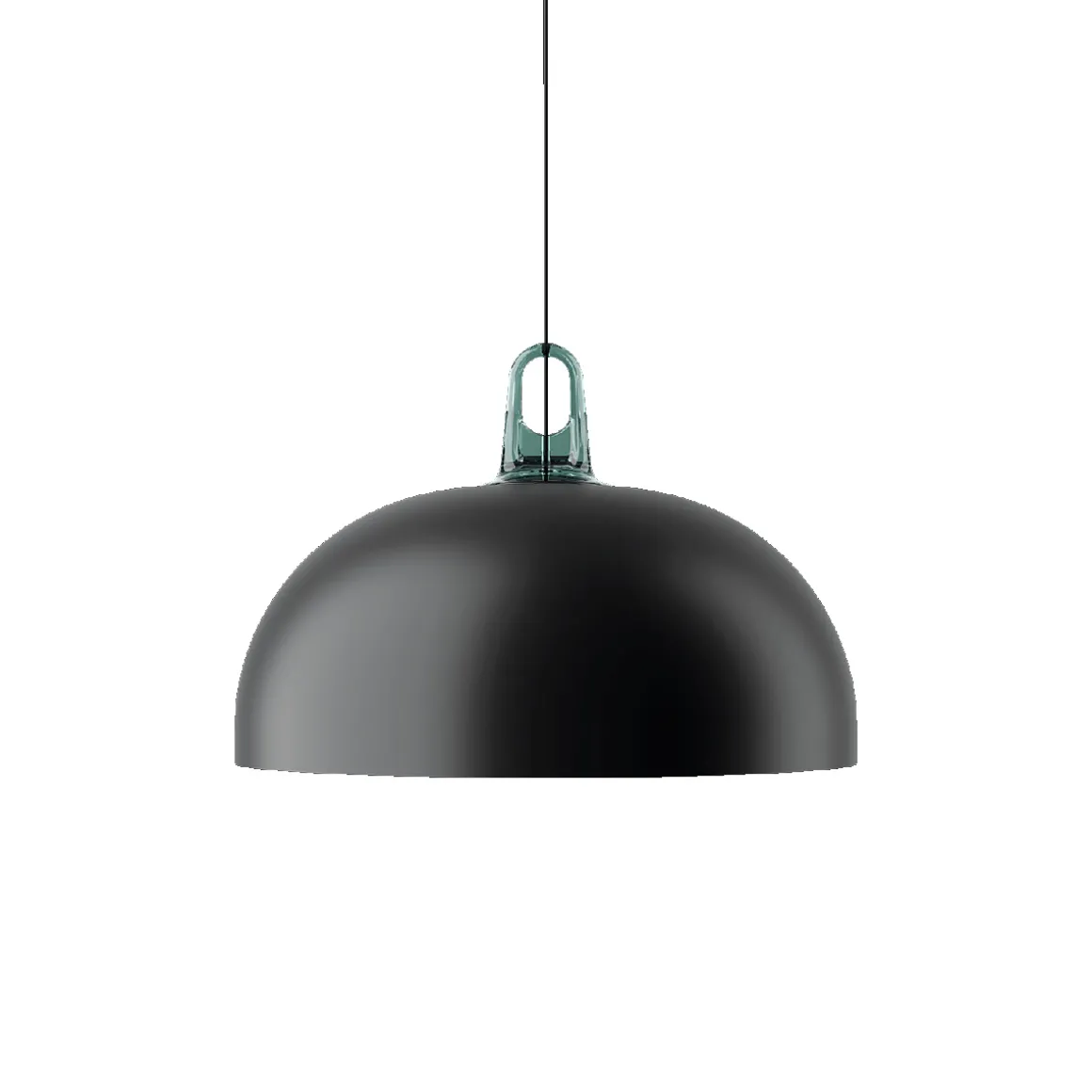 Die Lodes Jim Dome Pendelleuchte wird mit einem weißen Baldachin geliefert. Ausführungen mit einem Baldachin in Schwarz matt, Bronze matt, Chrom oder Champagner matt sind auf Anfrage erhältlich.