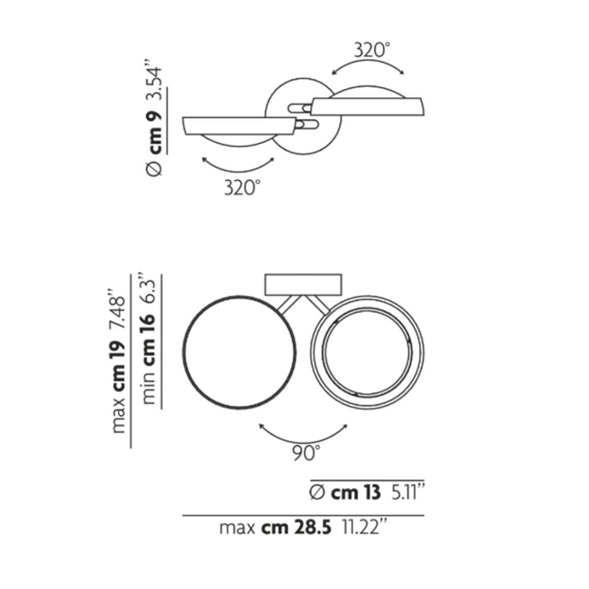 - Köpfe je um 320° drehbar und um 90° schwenkbar