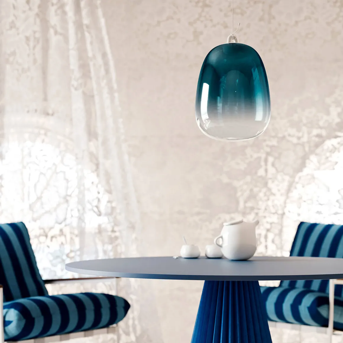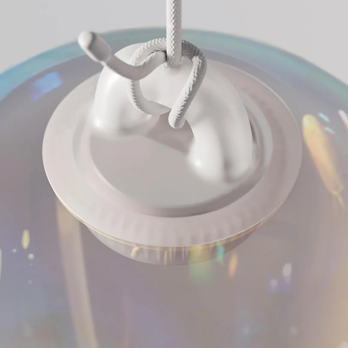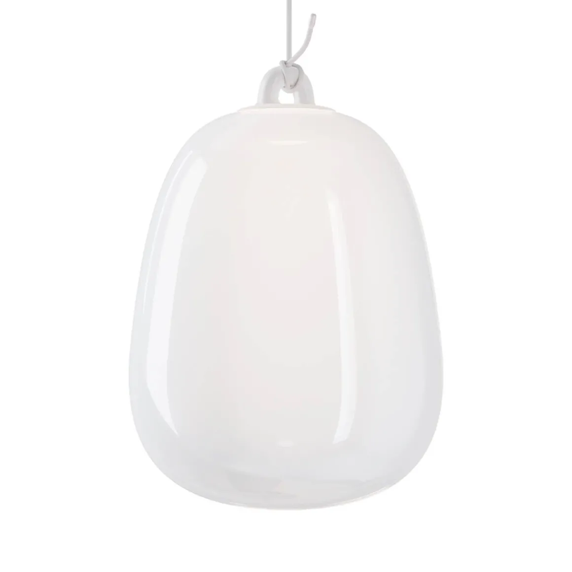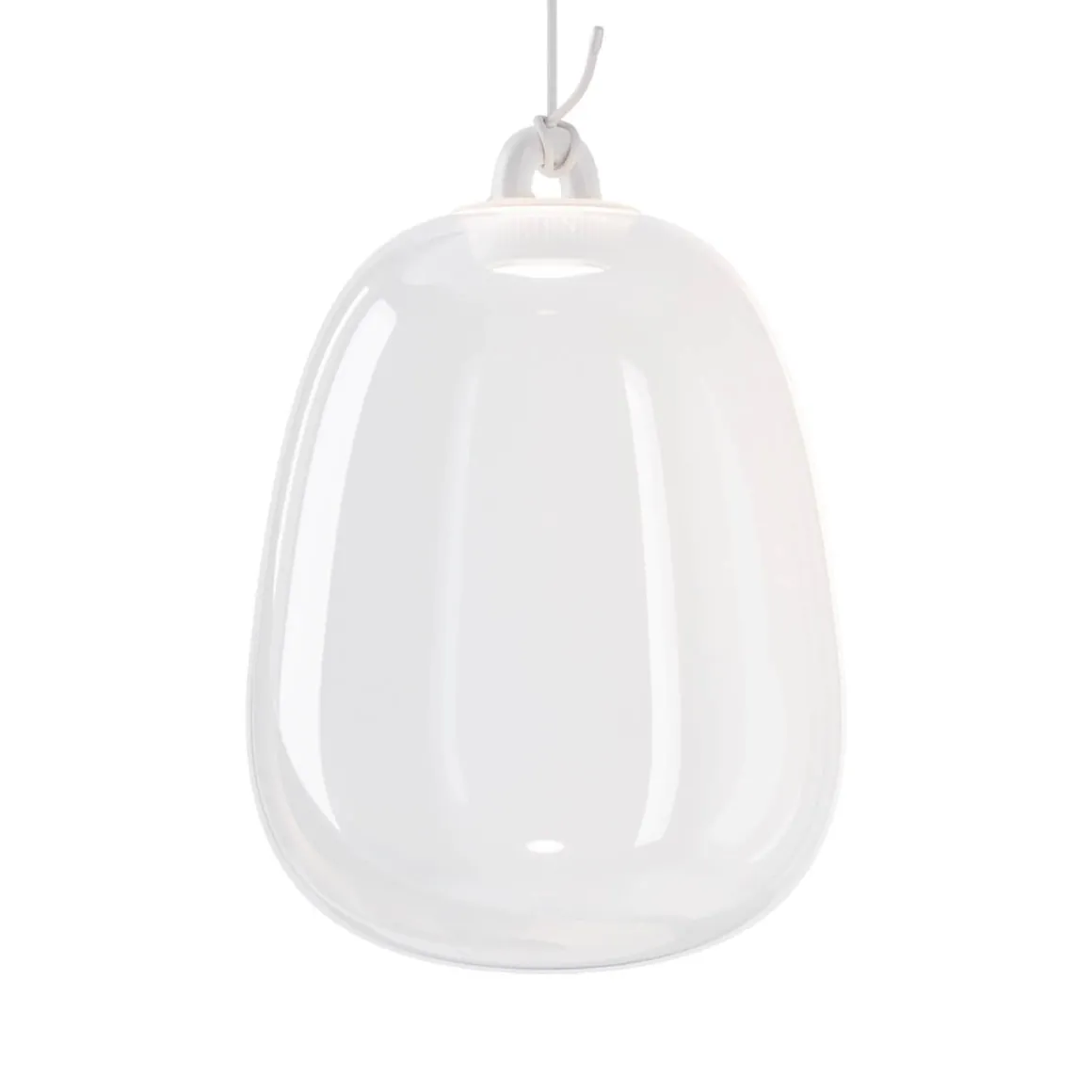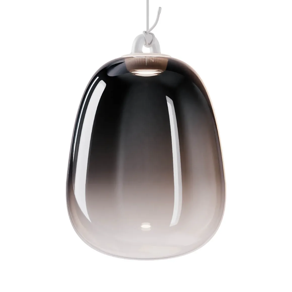 - Mit einer Glas Large LED Pendelleuchte in jeweils der ausgewählten Glasfarbe mit einem weißen runden Baldachin ausgestattet