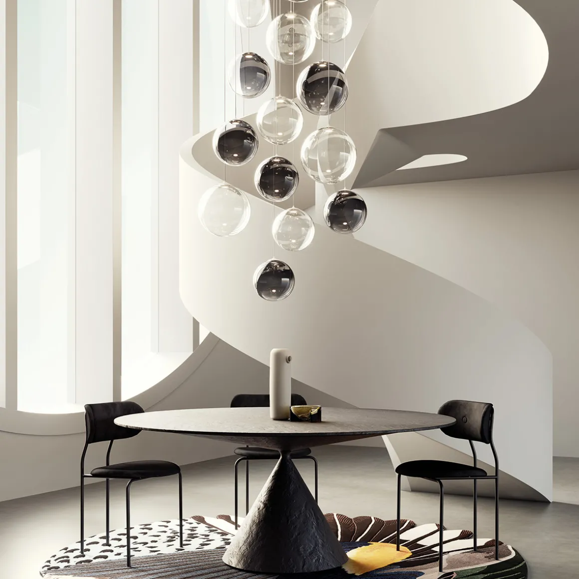 - Individuelle Konfigurationen aus mehreren Pendeln oder mit einem schwarz matten Baldachin auf Anfrage und gegen Aufpreis möglich