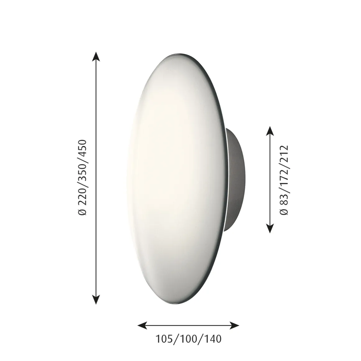 | Material/Oberfläche: | Mundgeblasenes Opalglas weiß, Wandsockel: Aluminium weiß pulverbeschichtet |