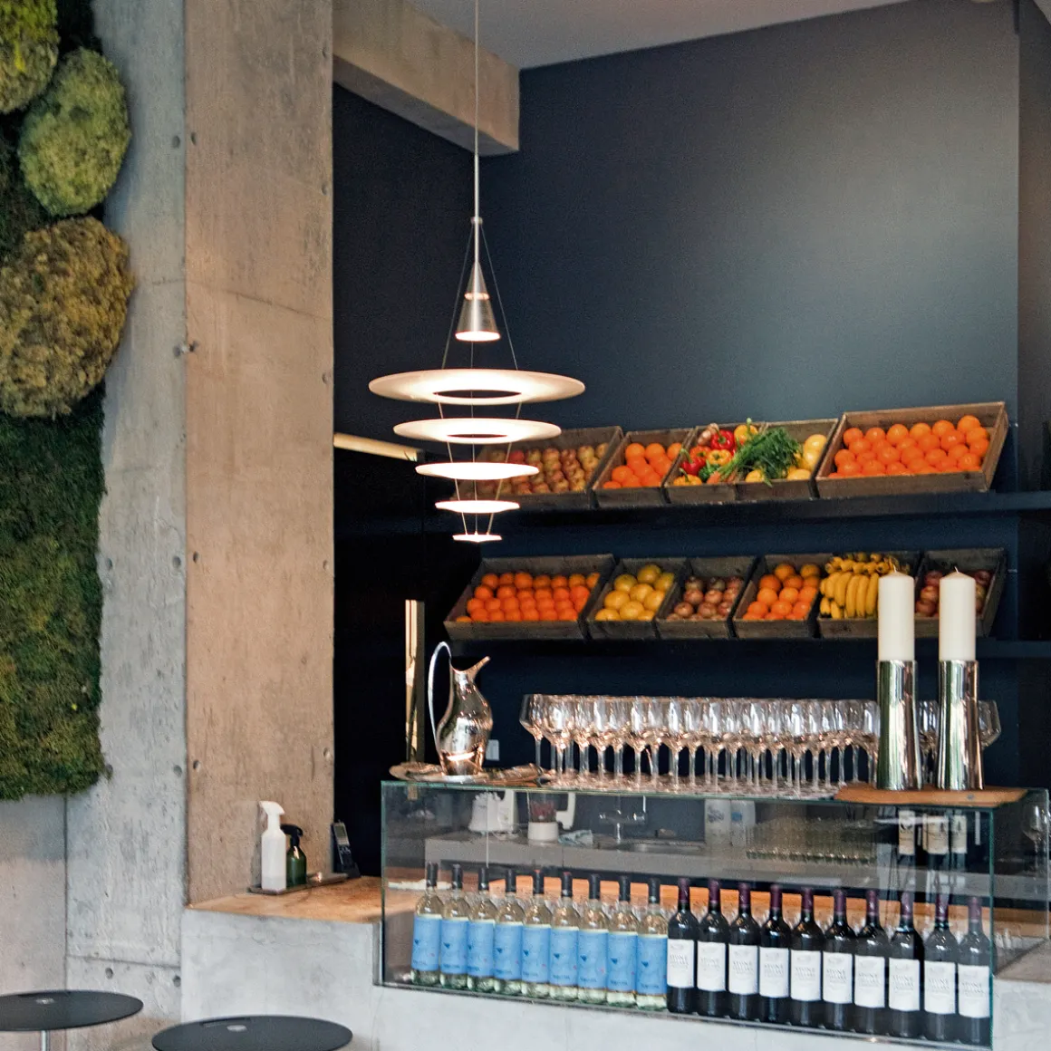 Geeignet sind die Hängeleuchten der Serie Louis Poulsen Enigma 545 sowohl für private als auch öffentliche Innenräume, wo sie über Esstischen oder Freiflächen eine atmosphärische Beleuchtung schaffen.