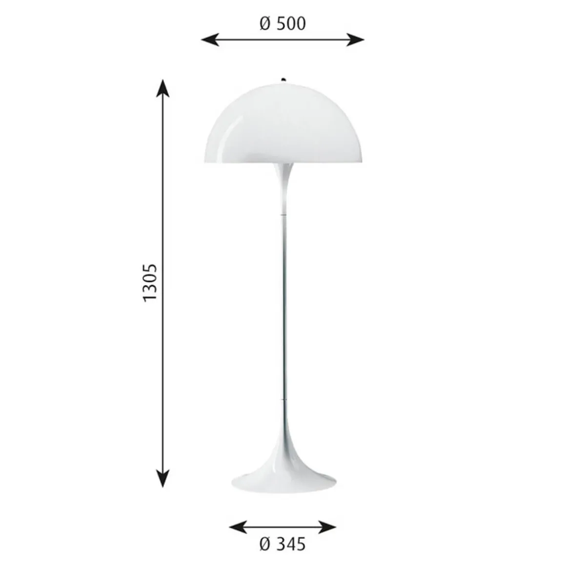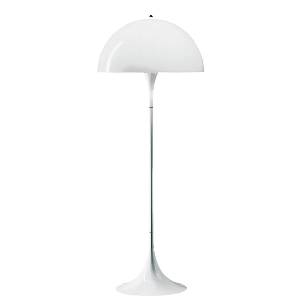 Die Panthella Stehleuchte von Louis Poulsen, entworfen vom renommierten Designer Verner Panton, ist ein Paradebeispiel für stimmungsvolle Beleuchtung. Mit ihrer eleganten, organischen Form, die sowohl den opalen Acrylschirm als auch den trompetenförmigen Fuß als Reflektorteil einsetzt, verbreitet die ein angenehmes, blendfreies Licht.