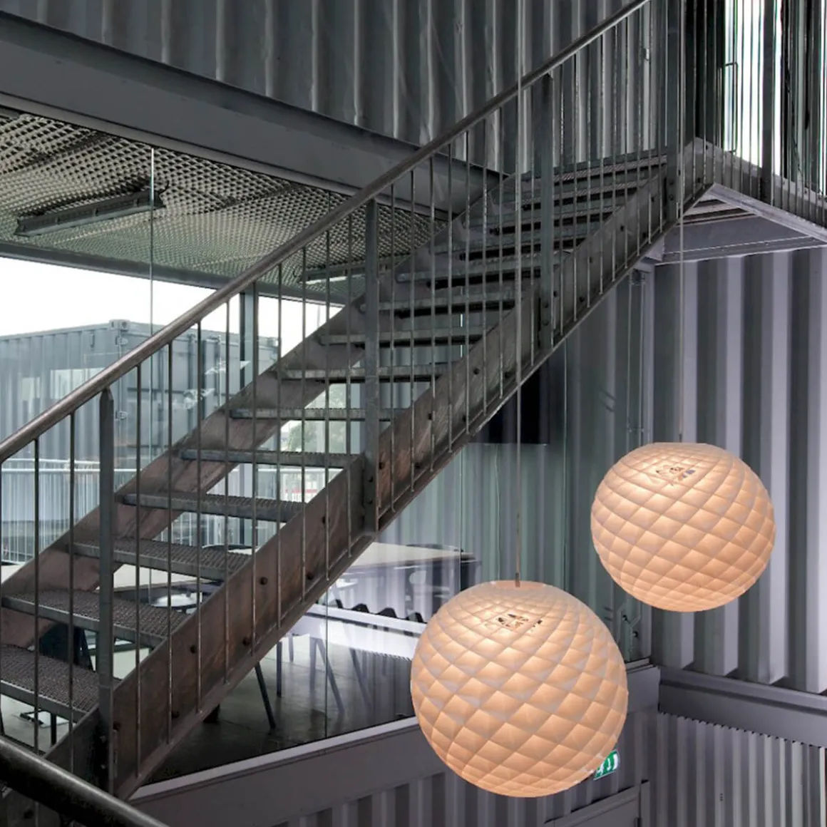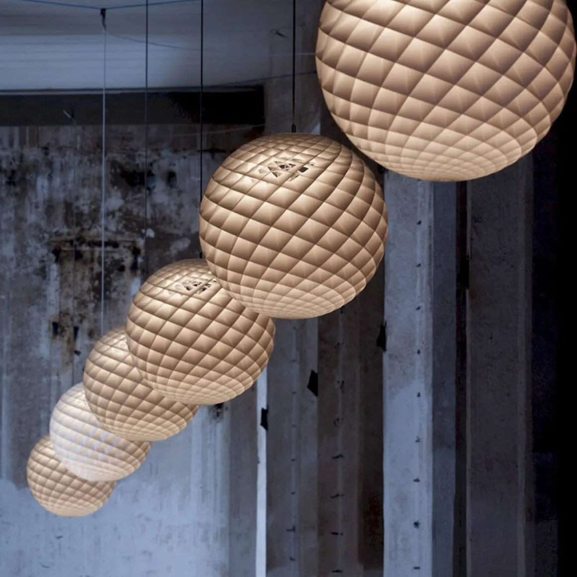 Die Patera, eine moderne Interpretation des klassischen Kronleuchters, sorgt für eine außergewöhnliche Beleuchtung. Die Pendellampe gleicht einer Kugel aus Licht, die aus mehreren kleinen, rautenförmigen Zellen zusammengesetzt ist. Die Kunststoffzellen wurden so präzise berechnet, dass sie das Licht einfangen, von innen her reflektieren und zugleich das ab einem Betrachtungswinkel von 45° abschirmen.