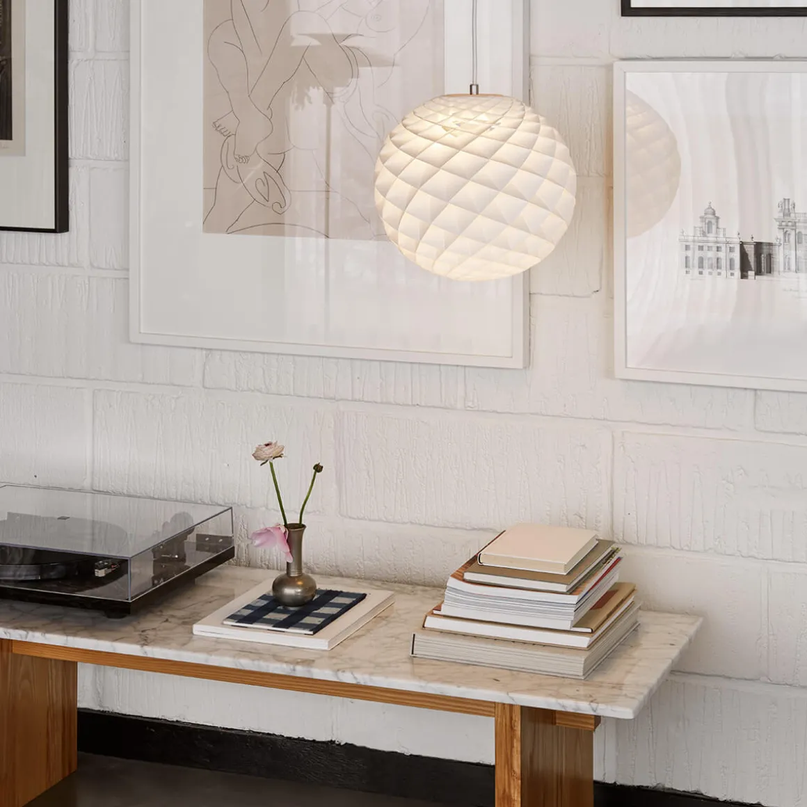 Dank dieser 360°-Beleuchtung eignet sich die Louis Poulsen Patera nicht nur zur Allgemeinbeleuchtung, sondern auch für ein blendfreies Zonenlicht über Esstischen und Theken. Das reizvolle Zusammenspiel aus (Tages-)Licht und Schatten verleiht ihr eingeschaltet wie ausgeschaltet eine besondere Ästhetik.