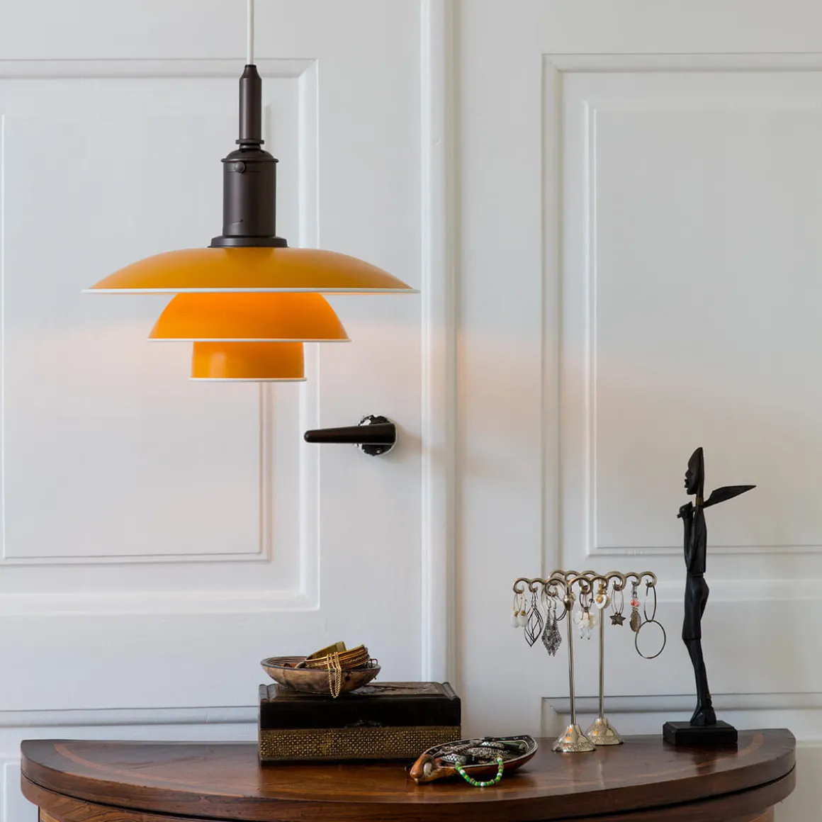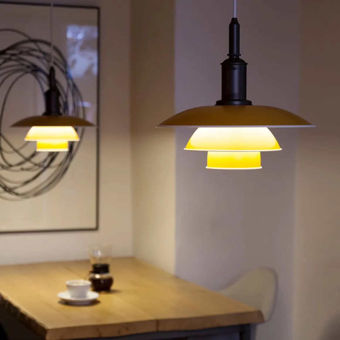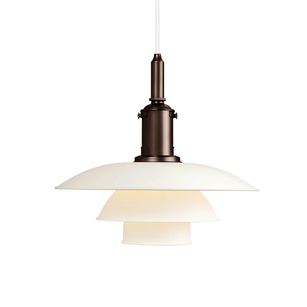 Jeder Leuchtenschirm wird in der Fabrik von Louis Poulsen in Vejen durch ein spezialisiertes Handwerksverfahren gezogen – eine Kunst, die nur wenige beherrschen. Trotz des Designs, das bereits über 80 Jahre alt ist, wirkt die PH 3½-3 Pendelleuchte zeitlos modern und passt sich vielfältigen Einrichtungsstilen an. Sie gilt als charmante, rustikale und bescheidene , die in jede Umgebung passt.