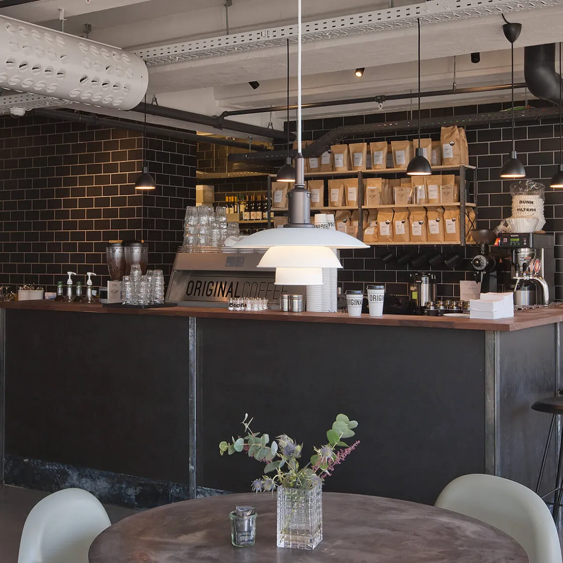 - Die kupferne Aufhängung schafft industrielles Flair