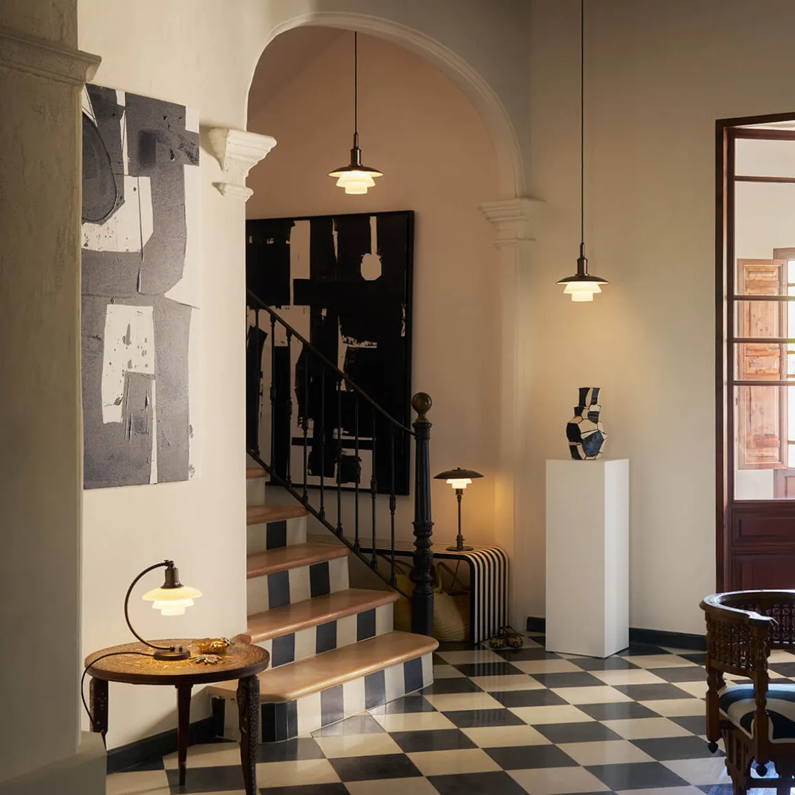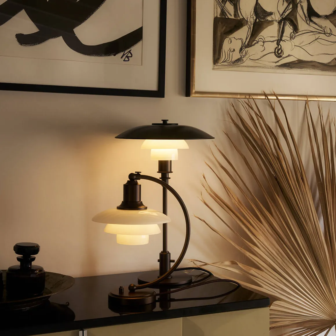Mit ihrem warmen Licht schafft die PH 3/2 Tischlampe eine angenehme Lichtinsel auf Tischen, Kommoden oder Fensterbänken. Ob als Nachttischlampe im Schlafzimmer, als Akzentbeleuchtung im Wohnzimmer, als elegante Lichtquelle im Bücherregal oder als stilvolles Statement in Hotels, Lounges und Empfangsbereichen – diese Designerleuchte fügt sich harmonisch in klassische wie moderne Interieurs ein.