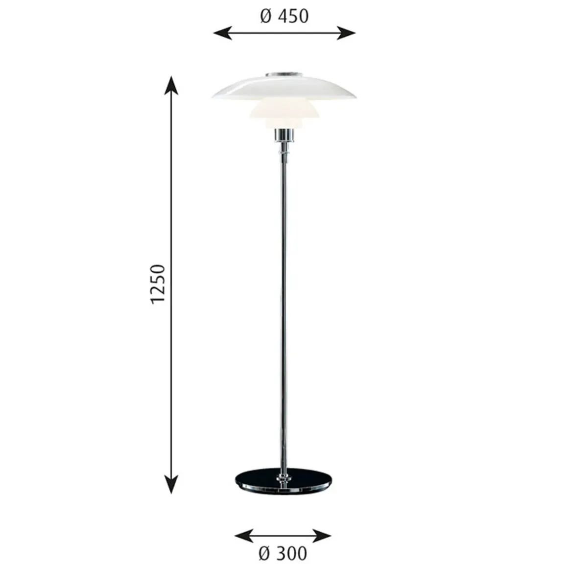 Von zeitloser Eleganz ist die PH 4½-3½ Glas Stehleuchte von Louis Poulsen. Im Jahre 1990 auf den Markt gebracht, rekurriert sie auf die Formensprache der traditionsreichen PH Leuchtenkollektion, deren kennzeichnendes Element – den dreiteiligen und aus mundgeblasenem Opalglas gefertigten Leuchtenschirm – der dänische Designer und Architekt Poul Henningsen bereits in dern 1920er-Jahren entwickelt hatte. In gemeinschaftlicher Arbeit mit Louis Poulsen wurden seither unzählige Produktvarianten kreiert, die heute eine Leuchtenserie von hohem Designanspruch bilden.