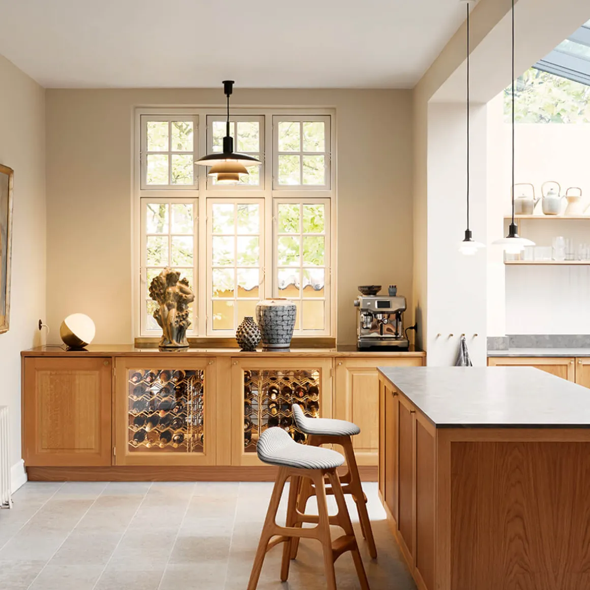Die PH 5/5 LED Pendelleuchte von Louis Poulsen, entworfen von dem weltberühmten Designer Poul Henningsen, ist ein zeitloses Meisterwerk, das mit seinem ikonischen Design und seiner harmonischen, blendfreien Lichtwirkung begeistert. Als Weiterentwicklung der klassischen PH , bietet die PH 5/5 eine perfekte Beleuchtungslösung für verschiedenste Räume, von Fluren und Treppenaufgängen bis hin zu offenen Raumflächen.