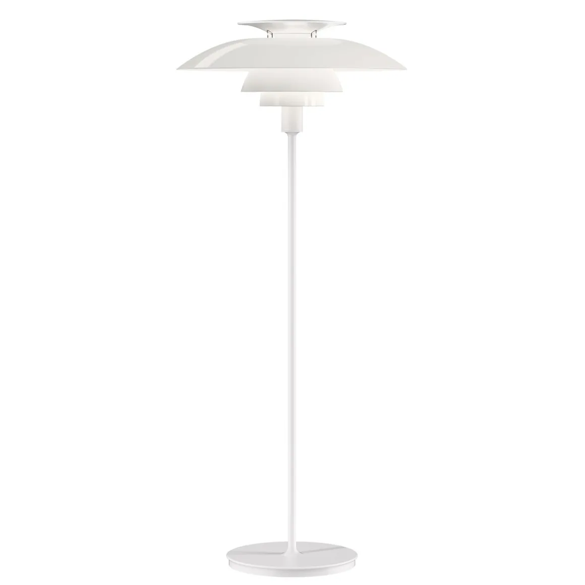 Im Original wurde die Stehlampe 1974 entworfen, als Hommage an den dänischen Designer und Architekten Poul Henningsen. Dieser entwickelte zwischen 1925 und 1926 das bahnbrechende Dreischirmsystem, das auch dem Design der PH 80 zugrunde liegt. Henningsen war der Erste, der einen wissenschaftlichen Ansatz an die Beleuchtung verfolgte. Im Zuge seiner Forschung fand er heraus, wie man über die gesamte Rundung des Schirms eine gleichmäßige Lichtabstrahlung erzielt.