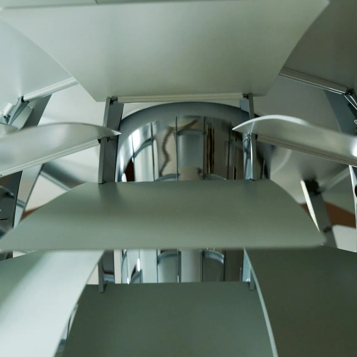 Die Schirme werden von hochwertigen Haltestrukturen in glanzvollem Chrom oder poliertem, metallisiertem Messing (PVD) ergänzt. Letzteres bewahrt dauerhaft seinen Glanz und verleiht warmen Farbtönen eine besondere Tiefe. Die Chrom-Variante hebt dagegen die Frische und Modernität der Farben hervor und verleiht der einen zeitgenössischen Charakter.