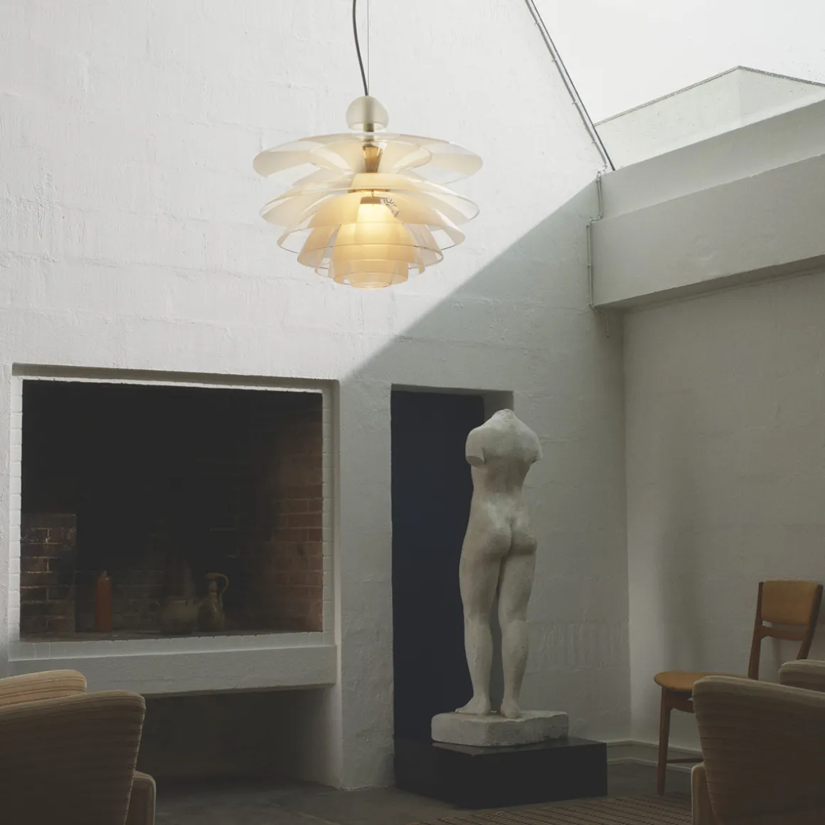 Der Öffentlichkeit präsentiert wurde die Louis Poulsen PH Septima Pendelleuchte erstmals 1928, als sie im Dänischen Museum für Dekorative Kunst (heute das Designmuseum Danmark) ausgestellt wurde. Damals wurde sie unter dem Namen PH Septima 5 bekannt, da sie über fünf statt der heutigen sieben Lampenschirme verfügte. In den 1940er-Jahren wurde die Produktion der zunächst eingestellt, da es an Rohstoffen für die Fertigung mangelte. Umso schöner präsentiert sich das Produkt in seiner heutigen Form – was die ausgesprochene Zeitlosigkeit des Designs bezeugt.