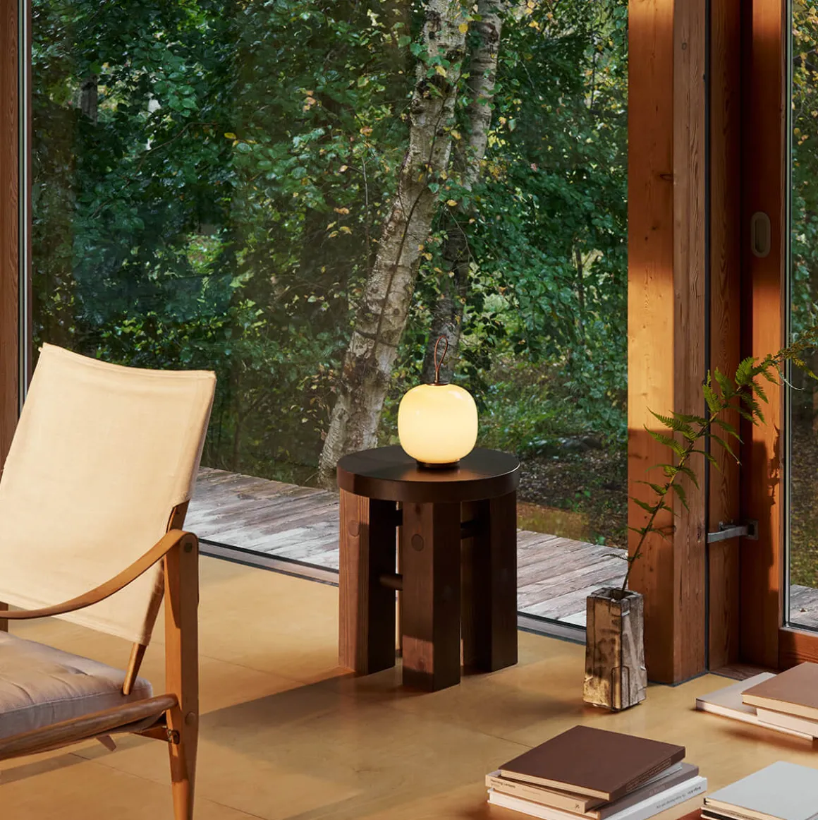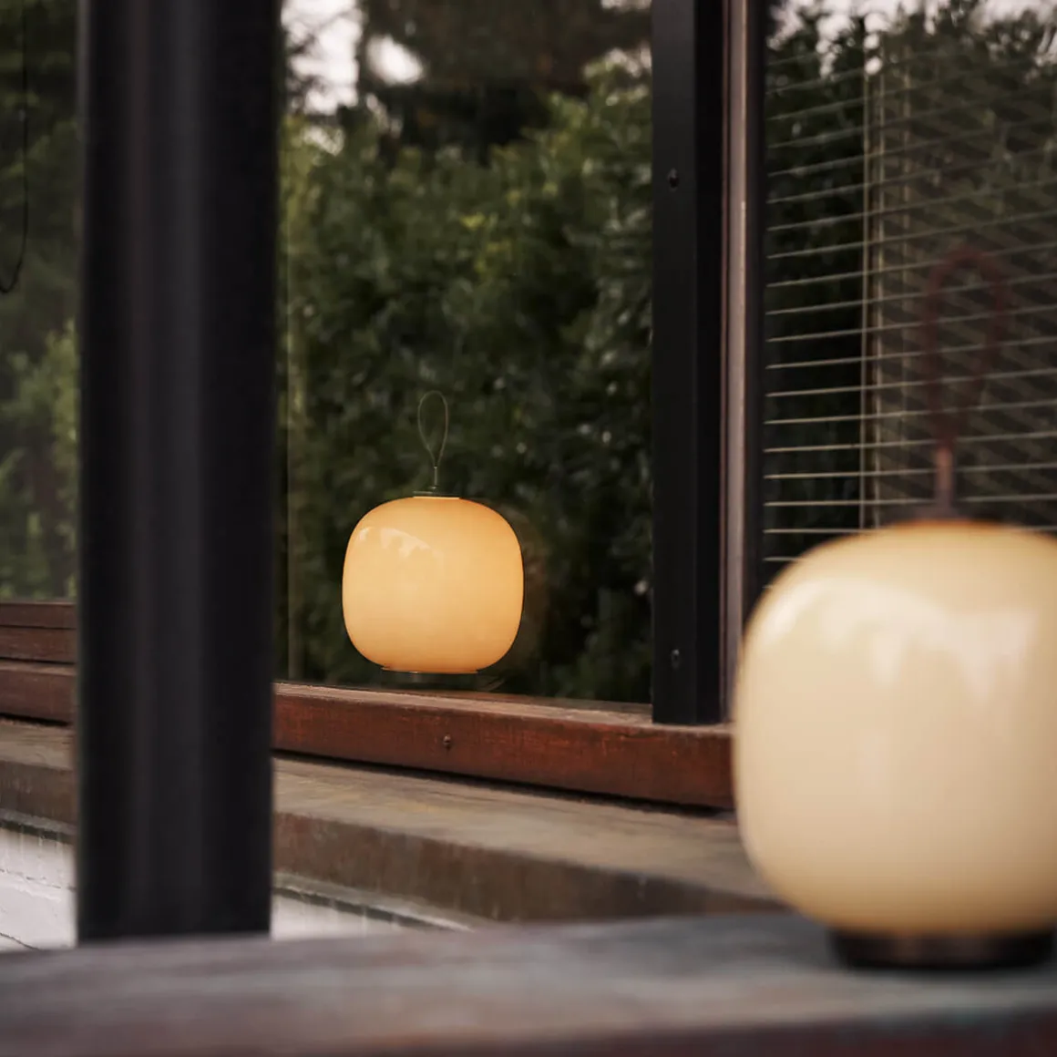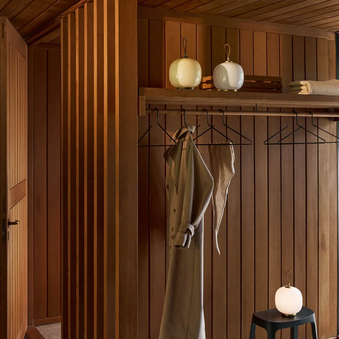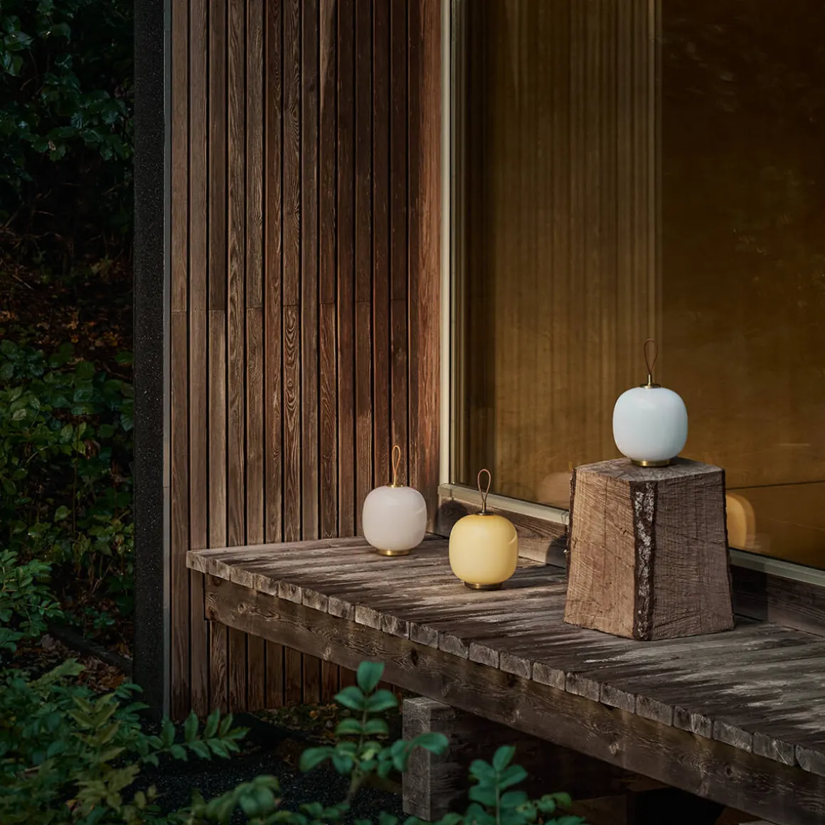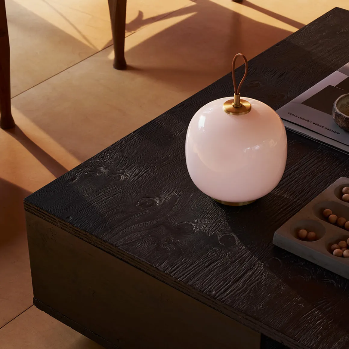 Erhältlich in Opalweiß, Blassrosa und Gelb, passt sich die VL 45 Radiohus Portable jeder Umgebung an. Die unterschiedlichen Farbvarianten sorgen je nach Wahl für ein warmes, diffuses Licht oder setzen sanfte Lichtakzente. Während sich die opalweiße Version an der weichen Lichtwirkung der originalen VL 45 Radiohus Pendellampe orientiert, setzt die blassrosa Variante einen zarten Farbakzent. Die gelbe Ausführung schafft ein wärmeres Licht und verfügt über patinierte Messingdetails.